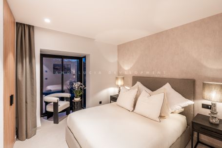 A bright and spacious fully renovated duplex penthouse situated in the well-loved Aloha Gardens development in Nueva Andalucia. When you step inside, you’ll notice how the open-plan design brings everything together. The living room connects to a modern kitchen and a cozy dining area, creating a warm and friendly space for everyday life. Large sliding doors lead out to a big terrace, perfect for relaxing, having a barbecue, or enjoying meals outdoors. There’s even a guest toilet on this floor for convenience.