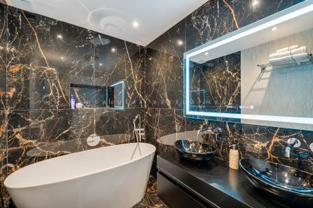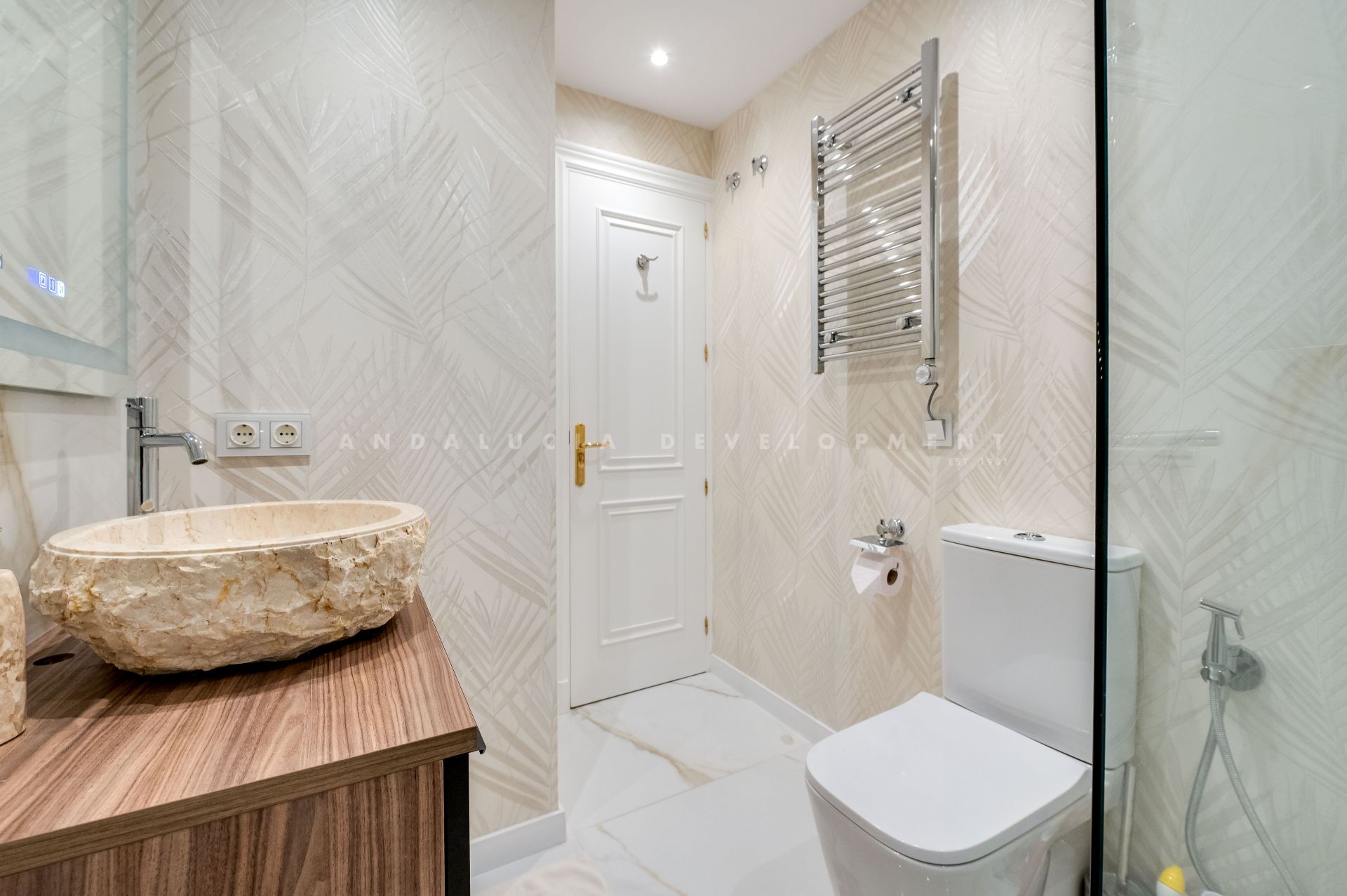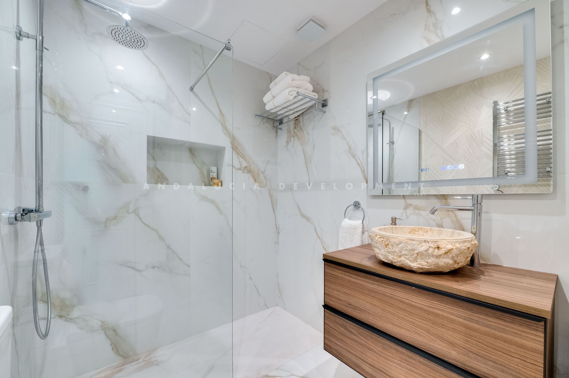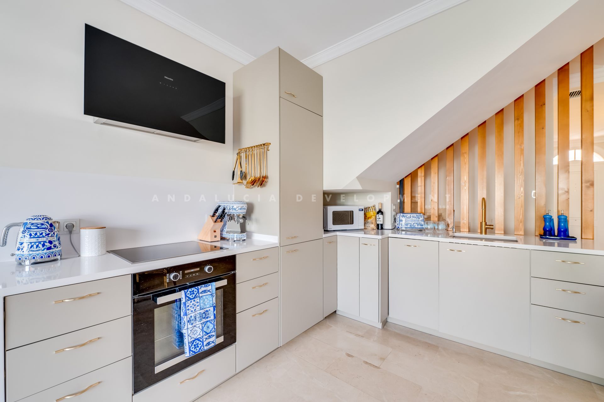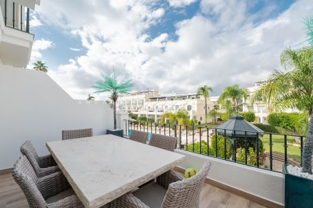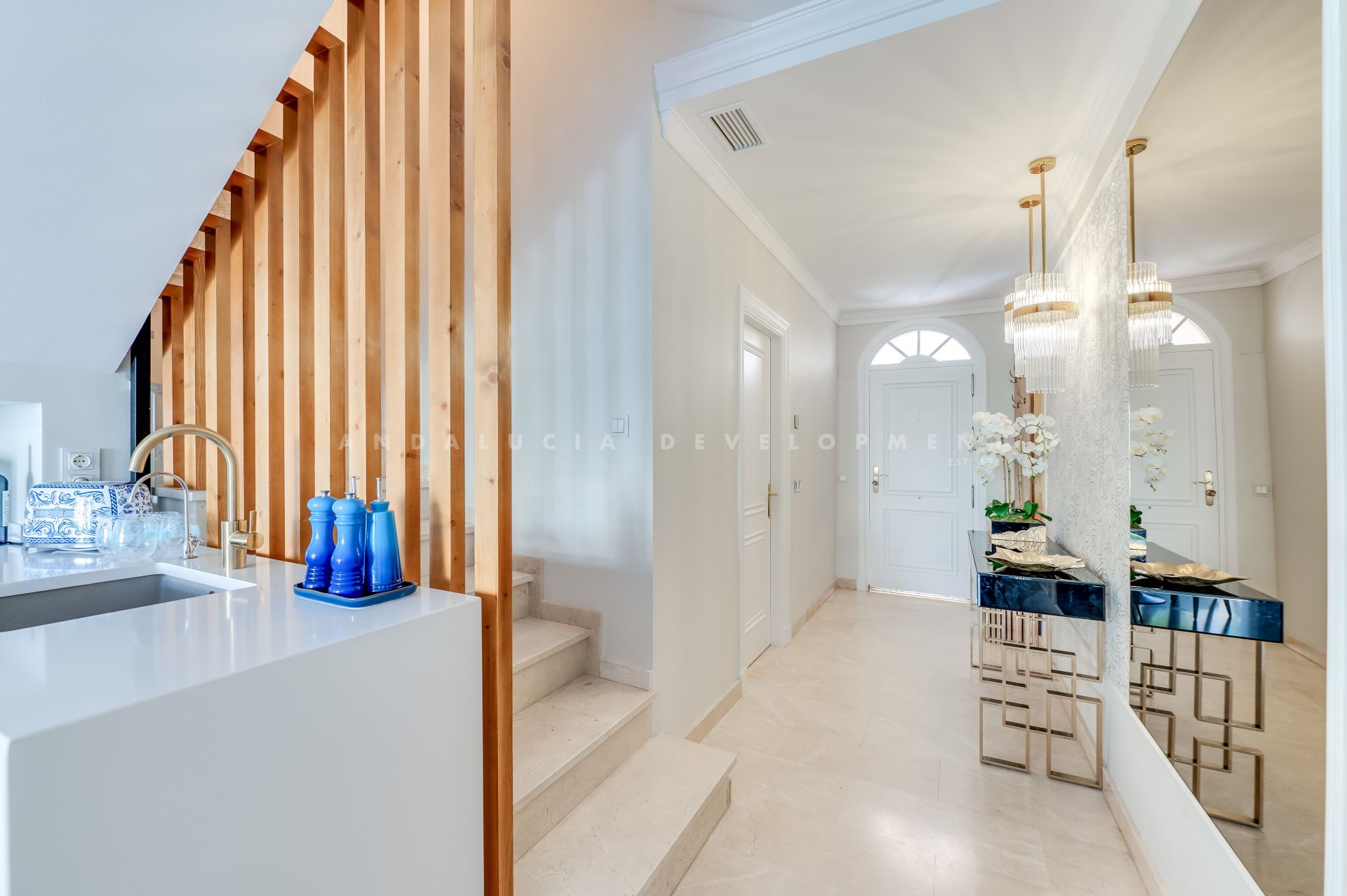 This renovated 3-bedroom duplex apartment in the prestigious Aloha Gardens, Nueva Andalucía, offers stylish and comfortable living. The open-plan kitchen flows seamlessly into the dining and living areas, with the living room opening to a second terrace ideal for outdoor dining or relaxing. A standout feature is the top terrace, transformed into a sophisticated bar and chill-out space for entertaining. Residents can enjoy access to two outdoor pools, an indoor pool, and the added security of a gated community. The property also includes underground parking for extra convenience. Perfectly positioned within walking distance to Puerto Banús, with its array of bars, restaurants, supermarkets, and nearby tennis and paddle courts, this apartment provides the ideal blend of luxury and location.