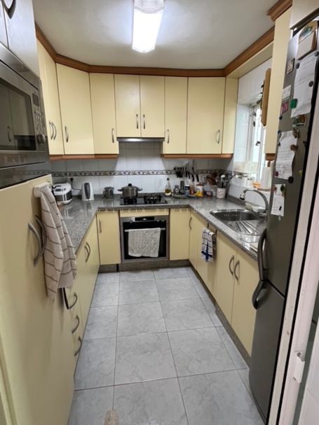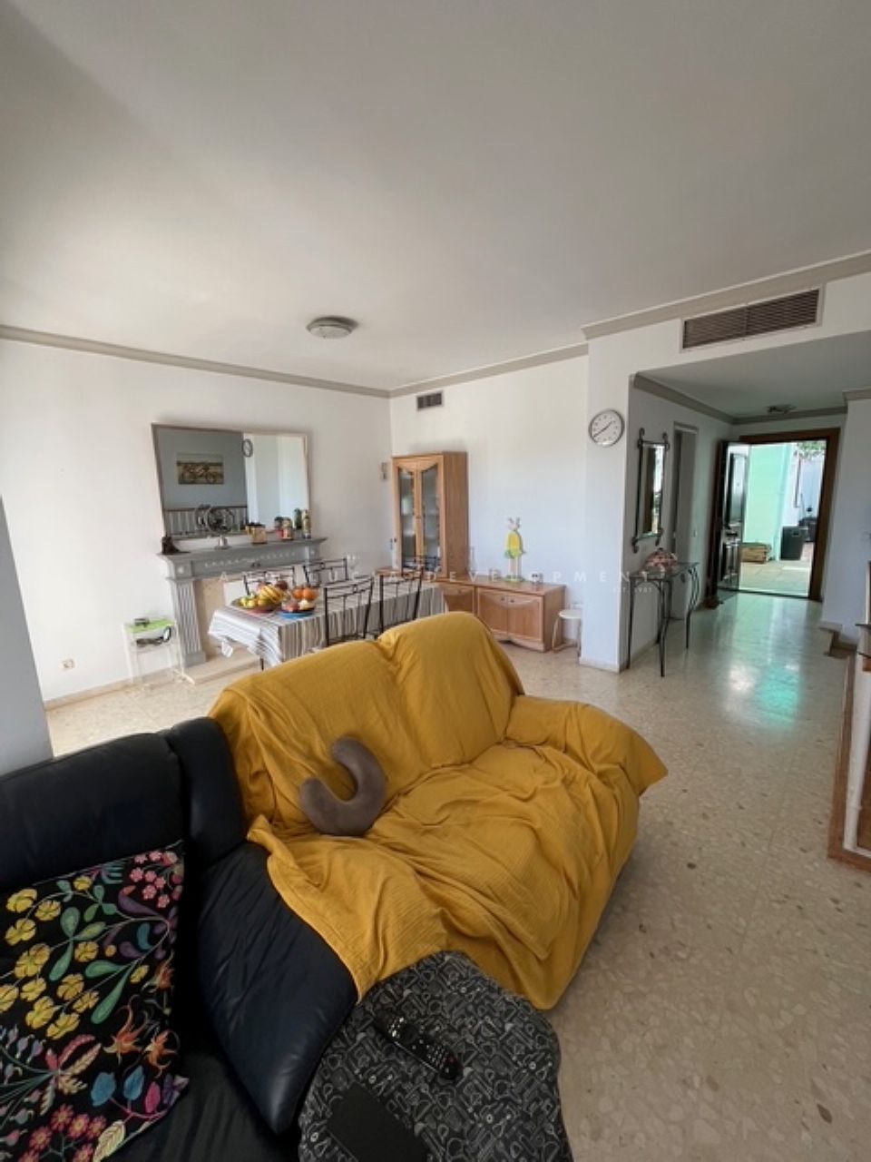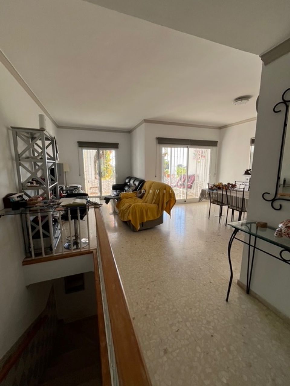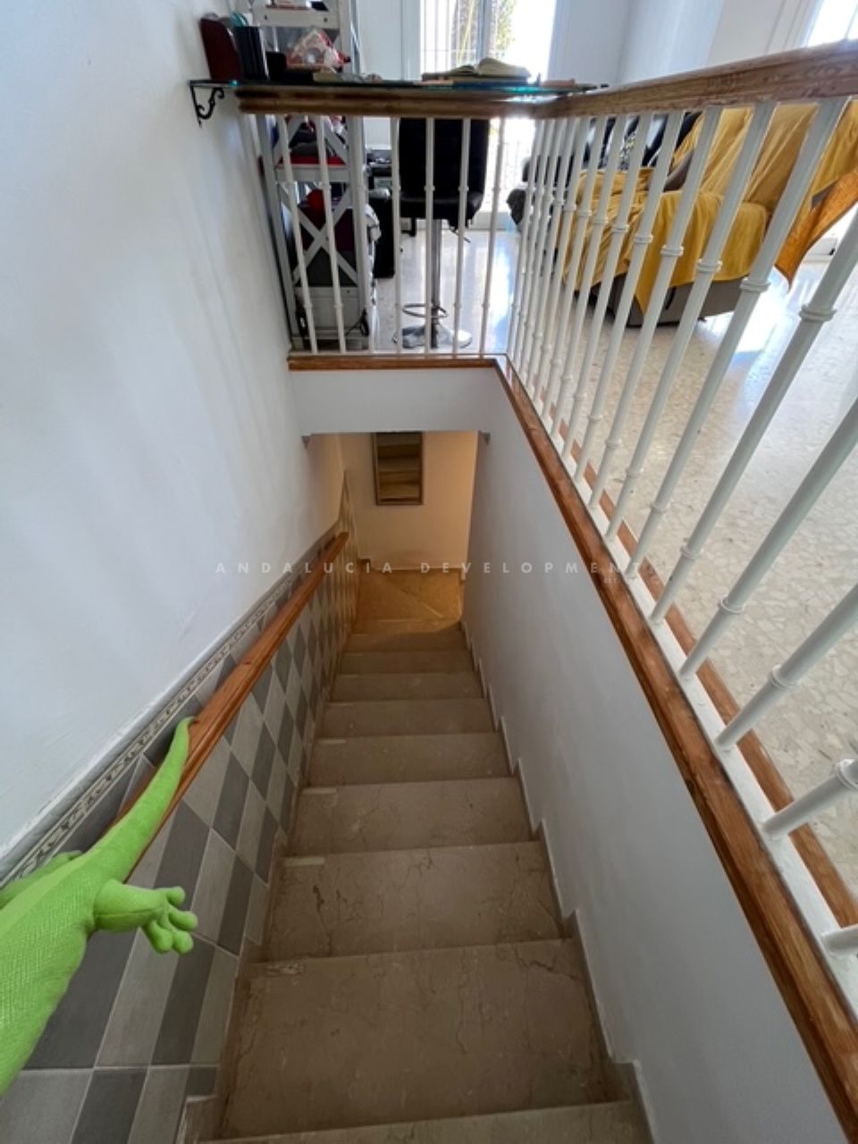 A rare find is this classic townhouse in La Retranca del Angel , specifically Santamaria. Built in the early 80´s with a prime position enjoying both golf and sea views in a southerly direction. As you enter you have a large patio/terrace with potential to become a sanctuary of light and space, from here you also have access to the 3rd bedroom suite. As you enter the main house you have the kitchen/lounge and dining area with access to the covered terrace where you can access the potentially 3rd terrace area, today it is a used as a garden. There are 2 bedrooms and 2 bathrooms on the lower floor where potentially you can open them up to gain access to the new terrace. PLEASE NOTE THAT THIS IS A RENOVATION PROJECT.