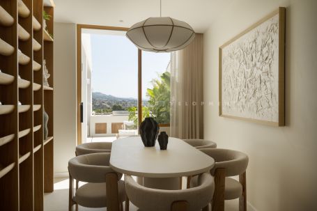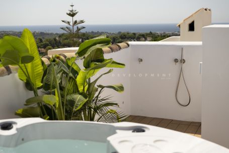 Discover this sensational 4-bedroom, 4-bathroom townhouse in the heart of Aloha. Featuring 3 en-suite bedrooms, this home combines luxury living with unbeatable proximity to Aloha Golf, top schools, and all local amenities. Enjoy breathtaking sea and La Concha views from multiple terraces, including a stunning rooftop lounge with a private jacuzzi. The primary suite is a true retreat styled in calming tones of beige and natural oak with brushed nickel fixtures adding a touch of sophistication.