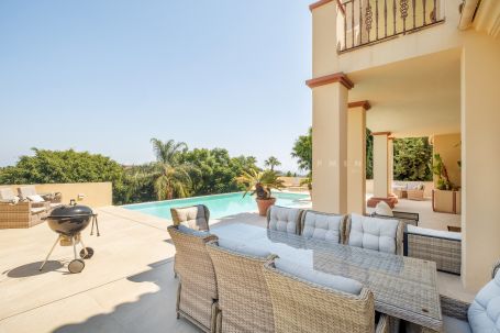 This villa is an exceptional property for sale in one of the most coveted areas of the Costa del Sol, offering an unparalleled blend of luxury, tranquility, and natural beauty. Nestled within the serene hills of Benahavís, this villa is the epitome of Mediterranean living, designed to provide both comfort and elegance in a private and peaceful setting. Spanning over 470 m² across two floors, this villa features an open and spacious layout that maximizes light and space. The ground floor welcomes you with a large living room, a sleek modern kitchen, and a cozy dining area, perfect for family gatherings and entertaining guests. A library, a bedroom, and a bathroom provide additional functional spaces, while multiple porches create outdoor retreats to enjoy the beautiful surroundings. Upstairs, the villa offers three bedrooms with en-suite bathrooms, ensuring privacy and convenience for every family member. The master suite is a true sanctuary, complete with a dressing room and access to a private terrace that boasts breathtaking panoramic views of the surrounding mountains and lush greenery. The villa’s outdoor spaces are nothing short of spectacular. With over 30 m² of porches and well-maintained gardens, you can enjoy the Mediterranean climate in complete privacy. A beautiful pool invites you to relax and unwind, while the ample terrace areas are ideal for alfresco dining and socializing in the sun. This villa is equipped with every modern convenience, including built-in wardrobes, a storage room, a garage, air conditioning, and central heating. Every detail has been carefully considered to ensure maximum comfort, creating a space where luxury and functionality are perfectly combined. Located just minutes away from the picturesque village of Benahavís, known for its outstanding restaurants and charming atmosphere, Villa Benahavís offers both privacy and accessibility. The villa is also within easy reach of the vibrant Marbella, with its world-class dining, shopping, and entertainment options, as well as renowned golf courses like Los Arqueros and La Quinta Golf. This villa is a rare opportunity to own a magnificent property in one of the most sought-after locations on the Costa del Sol. Whether you are seeking a permanent residence or a peaceful getaway, this villa offers a perfect balance of comfort, luxury, and exclusivity.