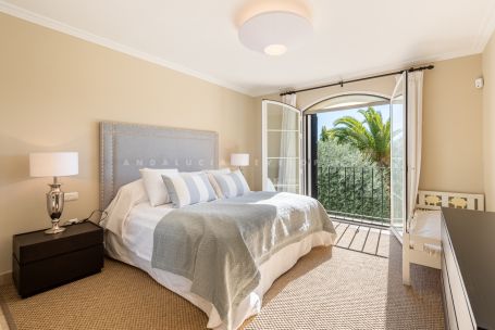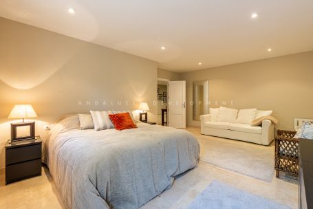 Discover this enchanting villa nestled within the exclusive 24-hour gated and secure community of Vega del Colorado. Located on the border of Nueva Andalucía in Marbella, yet belonging to the municipality of Benahavís, this stunning property perfectly combines timeless Andalusian charm with modern sophistication. From here, step into the inviting living room, complete with a cozy fireplace, or head to the expansive kitchen and adjacent dining area. The glass-enclosed terrace off the living room serves as a charming winter lounge, offering year-round comfort. The ground floor also features a guest bedroom and a beautifully appointed guest bathroom. The upper level houses two spacious guest bedrooms, each with its own en-suite bathroom. At the center of this floor is the magnificent master suite, boasting a private terrace with breathtaking sea views, a luxurious en-suite bathroom, and ample space for relaxation. On the lower level, you’ll find a versatile layout, including a guest bedroom that could easily be converted into a private apartment, a large multi-functional room perfect for a cinema or games area, and direct access to the outdoor garden. This floor also includes a practical utility/storage room. The villa sits on an extensive plot divided into three distinct areas. The upper level hosts the swimming pool surrounded by sun-soaked terraces, ideal for lounging or entertaining. The lower level features a variety of fruit trees, adding a touch of rustic charm, while the garden patio off the games room provides a peaceful outdoor retreat. Positioned on a tranquil hilltop, this property offers complete privacy and tranquility, with stunning views of the coastline. Perfect for families or those seeking a serene lifestyle, this exceptional villa is a rare gem that combines elegance, comfort, and practicality in one of the Costa del Sol’s most desirable locations. Don’t miss the opportunity to make this exquisite villa your new home!