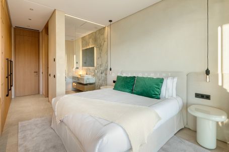 The residence offers six elegant bedrooms, each with its own en-suite bathroom. The top floor is entirely dedicated to the master suite, which includes a private terrace with sea views, two walk-in wardrobes, and a luxurious en-suite bathroom. Every space is thoughtfully designed to balance privacy, functionality, and comfort, with sophisticated materials and detailing evident throughout.