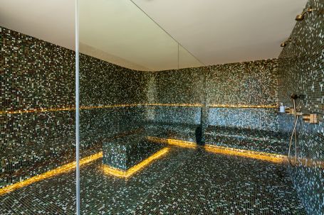 The lower level is designed for wellness and recreation, featuring a private cinema, games room, a hammam, a plunge pool, and a fully equipped gym with both indoor and open-air workout areas. A guest apartment with two bedrooms and a separate entrance provides independent living space for visitors or staff. A climate-controlled wine cellar, a lift connecting all three floors, and a Zennio smart home system underscore the villa’s commitment to luxury, security, and intelligent living.