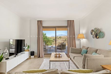 Located in the prestigious Hacienda Señorío de Cifuentes, this stunning apartment offers the perfect balance of luxury, comfort, and nature. Surrounded by magnificent golf courses and the beautifully maintained gardens of the development, it is the ideal home for those seeking a peaceful retreat in an exclusive setting, without giving up the convenience of nearby amenities. The property features three bright bedrooms and two bathrooms, and has been thoughtfully designed to provide a comfortable and elegant living experience. The west-facing living room is spacious and inviting, opening onto a spectacular L-shaped terrace that is both large and very private, perfect for soaking up the sun, unwinding, or enjoying special moments with family and friends. From the terrace, you can enjoy partial sea views and beautiful mountain views, enhancing the sense of peace and connection with the natural surroundings. The separate, fully equipped kitchen offers a functional and stylish space, ideal for those who enjoy cooking. In addition, the apartment is fitted with air conditioning and underfloor heating throughout, ensuring maximum comfort all year round. The gated community is safe and impeccably maintained, with 24-hour security, expansive landscaped areas, and four swimming pools, including a striking infinity pool that blends seamlessly with the horizon, creating a truly unique atmosphere of relaxation. Just an 8-minute drive from supermarkets, pharmacies, and restaurants, and only 15 minutes from San Pedro, with Marbella and Estepona just 25 minutes away, this property boasts an unbeatable location for those looking to combine tranquility, natural beauty, and proximity to the vibrant lifestyle of the Costa del Sol.