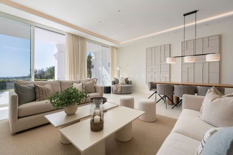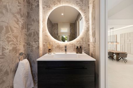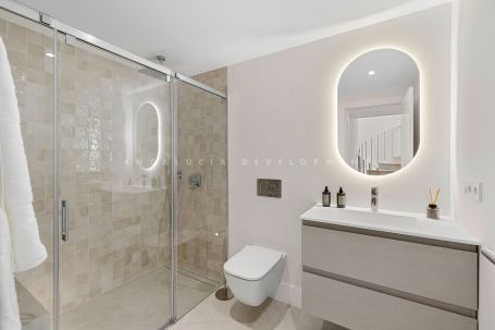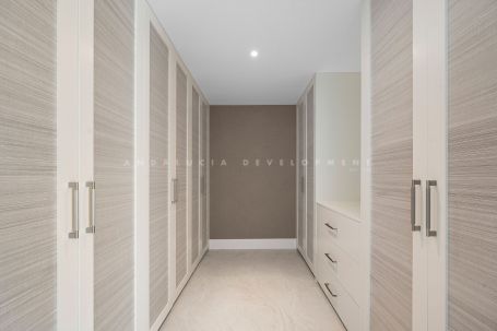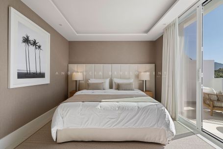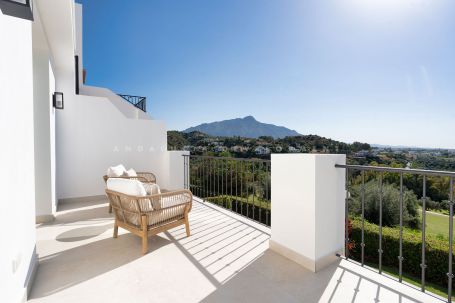 An exquisitely totally reformed townhouse located in the popular urbansiation of El Mirador de La Quinta in Benahavis. As you enter the property, you are greeted with an abundance of light, high ceilings and sea views through the extra high sliding terrace doors. The bespoke open-plan kitchen leads down to the extremely spacious living/dining room and straight out onto the covered terrace leading to the communal gardens offering stunning South-East facing views towards the sea and mountain. On the first floor you have 3 bedrooms and 3 bathrooms with the master bedroom having a generous walk in wardrobe, private terrace and a large bathroom suite with stunning views. On the third floor you have the 4th bedroom suite having access to 2 terraces also with stunning views. The townhouse was completely gutted and has been fitted with high quality materials throughout, the interior decoration and color scheme has been carefully selected creating a classy yet warm feeling. A truly magnificent townhouse in a very popular location.