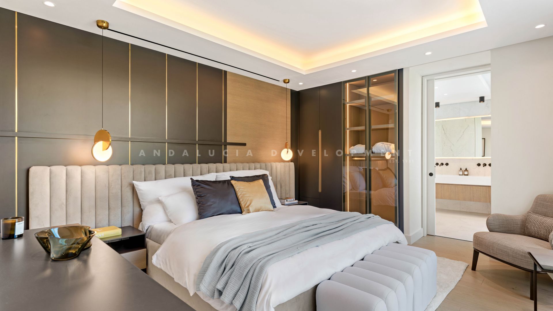 Upstairs, the impressive main bedroom suite enjoys a privileged position with a private open terrace and panoramic views. Four additional bedrooms suites, all of them with private terraces provide generous accommodation.