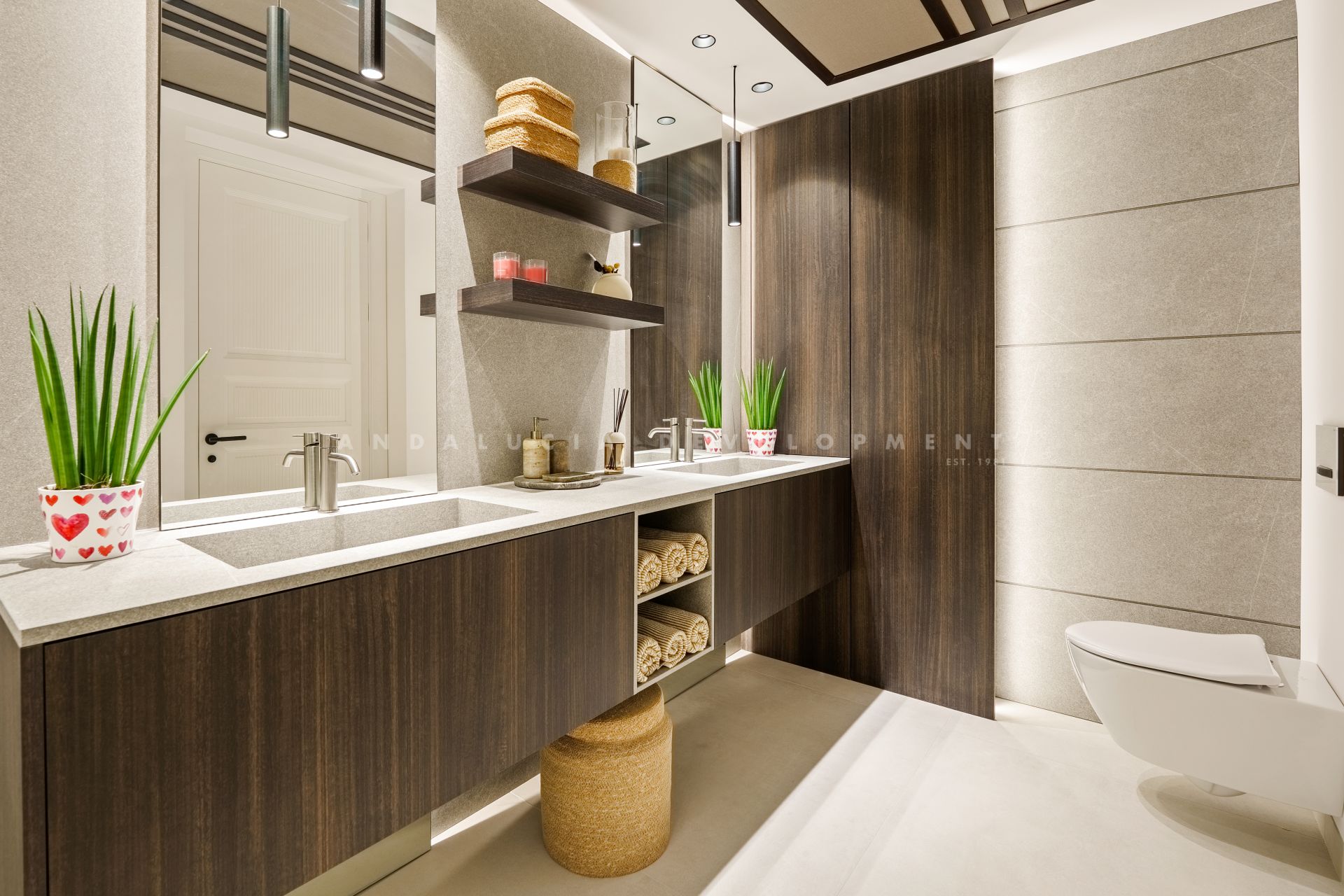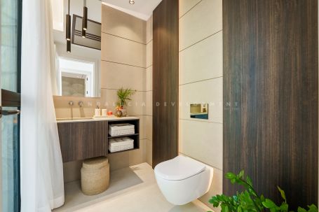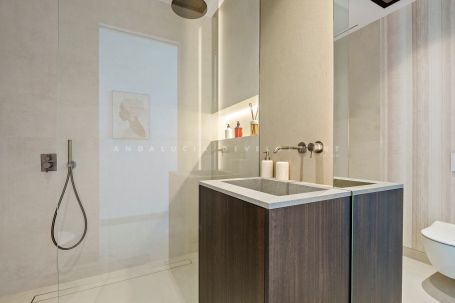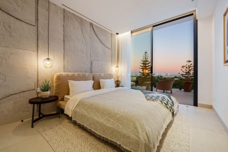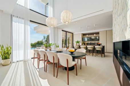 This villa is an exceptional contemporary residence within the exclusive Tresora Villas gated community in La Quinta, Marbella. Designed and built by Cogitari Homes, this sophisticated villa embodies the essence of modern Mediterranean living—combining architectural elegance, refined comfort, and the serenity of its natural surroundings. Perfectly positioned between the Mediterranean Sea and La Concha mountain, it enjoys panoramic views of the coast and valley below. Spanning 605m² across three levels, the villa offers five bedrooms and four bathrooms, all crafted with the highest attention to detail. The main level features open-plan living and dining areas that flow seamlessly onto expansive terraces and a stunning 73 m² infinity pool, creating an effortless indoor–outdoor lifestyle ideal for entertaining or quiet relaxation. Floor-to-ceiling windows flood the interiors with natural light, highlighting the villa’s clean lines and contemporary finishes. The upper level is dedicated to restful living, with elegantly appointed bedroom suites including a spacious master bedroom with private terrace, dressing area, and breathtaking views. The entertainment level provides a luxurious retreat with a private gym, wine cellar, cinema lounge, and garage for multiple vehicles, as well as a laundry and storage area—all designed to combine comfort and practicality with style. Located just minutes from La Quinta Golf & Country Club, Los Naranjos, and Los Arqueros Golf, and a short drive from Puerto Banús and Puente Romano, Tresora Villa B offers the ultimate Marbella lifestyle. Surrounded by lush landscapes and world-class amenities, it is a home where architectural excellence, natural beauty, and contemporary living meet in perfect harmony.