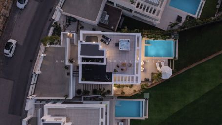Welcome to this modern and contemporary west facing Villa located in La Resina Golf with mountain and golf views. The Villa has been designed blending contemporary architecture with modern interiors and an open layout to enjoy indoor / outdoor living. Distributed over four levels as follows: