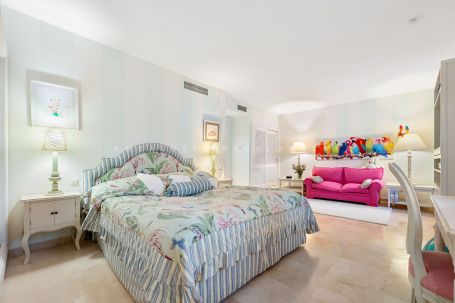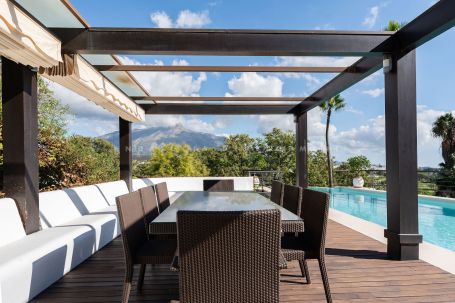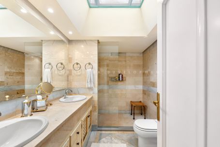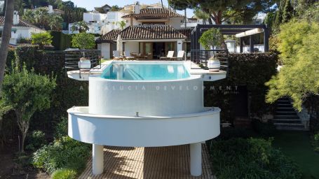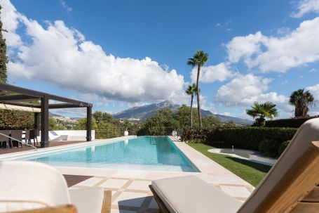 Rare opportunity to aquire a classic villa in perfect condition frontline to Royal Las Brisas Golf. As you enter you immediately feel that the house was built to very high standards where details and personal touches can be seen throughout. The main floor comprises of the open plan kitchen, dining area and livingroom all with access to the terrace area where you have amazing views over the 15 meter long heated infinity pool towards La Concha. On the same floor you have 2 bedrooms ( orginally 3), 2 bathrooms and a guest toilet. The first floor occupies the Master Suite with a beautiful private terrace enjoying the grand views. There is also direct access from the property onto Las Brisas Golf & a private golf buggy parking. The house has a large garage and carport . In the basement area you have a custom built bodega with room for hundreds of bottles, a laundry room and a storage which could be turned into a games room etc. This is a special property in a priviliged location that has to be seen to be fully appreciated **PLEASE NOTE THAT THIS WAS ORIGINALLY A 4 BEDROOM HOUSE AND CAN EASILY BE CONVERTED BACK**