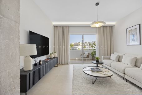Located in the exclusive urbanisation of Los Dragos, in the heart of Nueva Andalucía, you will find this recently refurbished turnkey property. With a modern and functional design, the property has 3 bedrooms and 2 bathrooms, one of them en-suite, and it is ideal for those who are looking for comfort and elegance in their home. The kitchen opens to the living room, creating a bright and welcoming atmosphere, great for entertainment and day to day life. In addition, there is a private terrace, accessible from the living room and master bedroom, and an additional rooftop terrace with panoramic views, ideal to relax or enjoy a nice meal. The development offers a range of amenities, including a tennis and paddle court, fully equipped gym and coworking space, as well as a communal swimming pool surrounded by manicured gardens.