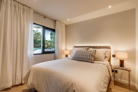 Charming, fully renovated & furnished 4-bedroom townhouse nestled in the cozy residential development of Los Potros in Aloha, Nueva Andalucia. This luxuriously home exudes Spanish charm and boasts beautifully landscaped gardens. Renovated with the highest quality materials and craftsmanship, this property offers unparalleled luxury living. If you desire a property within walking distance to amenities, look no further! Enjoy the afternoon sun on the main terrace and private garden, both situated on the west side.