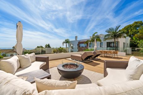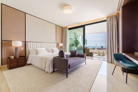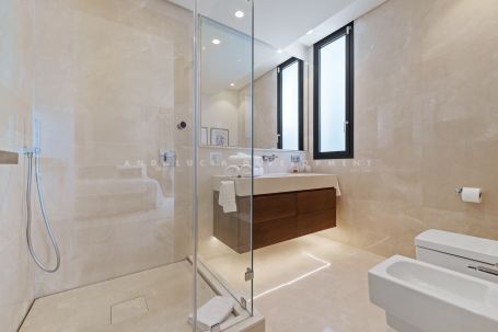 This stunning ground floor duplex apartment located in the prestigious gated community of Reserva de Sierra Blanca, offering an unmatched blend of elegance, comfort, and panoramic sea views. Nestled in one of Marbella’s most sought-after enclaves, this property combines the privacy of a villa with the convenience of an apartment, all within a secure and exclusive complex. Its contemporary design, premium finishes, and spacious layout create a sophisticated home perfect for both year-round living and as a luxury holiday retreat. The apartment boasts expansive living areas flooded with natural light, seamlessly connecting to large terraces and private outdoor spaces with breathtaking views of the Mediterranean. Inside, the open-plan living and dining areas flow effortlessly into a modern, fully equipped kitchen with top-of-the-line appliances. The residence features generously sized bedrooms with en-suite bathrooms, a stylish entertainment room, and thoughtfully designed interiors that exude warmth and modernity. The seamless integration of indoor and outdoor living makes this property ideal for entertaining guests or enjoying peaceful moments surrounded by natural beauty. Set within the prestigious Sierra Blanca, Reserva 5 benefits from first-class communal amenities including manicured gardens, swimming pools, and 24-hour security, ensuring both relaxation and peace of mind. With Marbella’s Golden Mile, vibrant Puerto Banús, and the sandy beaches just minutes away, residents can enjoy the very best of the Costa del Sol lifestyle. Whether as a permanent residence or a luxurious getaway, This duplex represents a rare opportunity to own a truly remarkable home in one of Marbella’s most exclusive addresses.