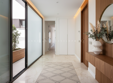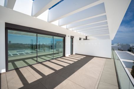 This penthouse is a brand-new duplex home in a secure gated community in Marbella East. It has two ensuite bedrooms, a guest bathroom, and an open-plan living space that connects the kitchen, dining, and lounge areas. Floor-to-ceiling windows fill the home with natural light and open onto a large terrace with views of the sea, mountains, and golf course. Every detail of this penthouse is designed for comfort and style. Features include under-floor heating, solar energy, and a private laundry room. The semi-covered terrace is perfect for dining outdoors or relaxing in the evening while enjoying the view of the gardens and coastline. The highlight of this property is its private rooftop terrace with a pool. It offers space for sunbathing, entertaining, or quiet nights under the stars. Two parking spaces, a storage room, and access to resort-style facilities – including indoor and outdoor pools, a spa, gym, concierge, and 24-hour security – complete this exceptional home.