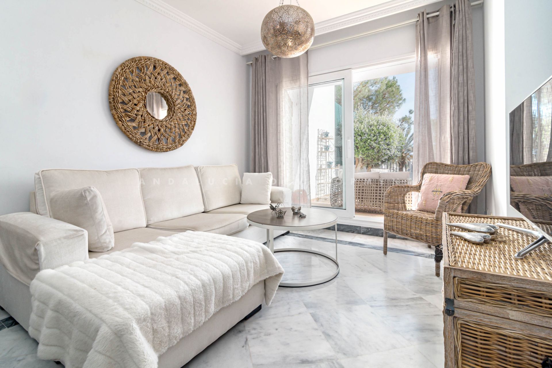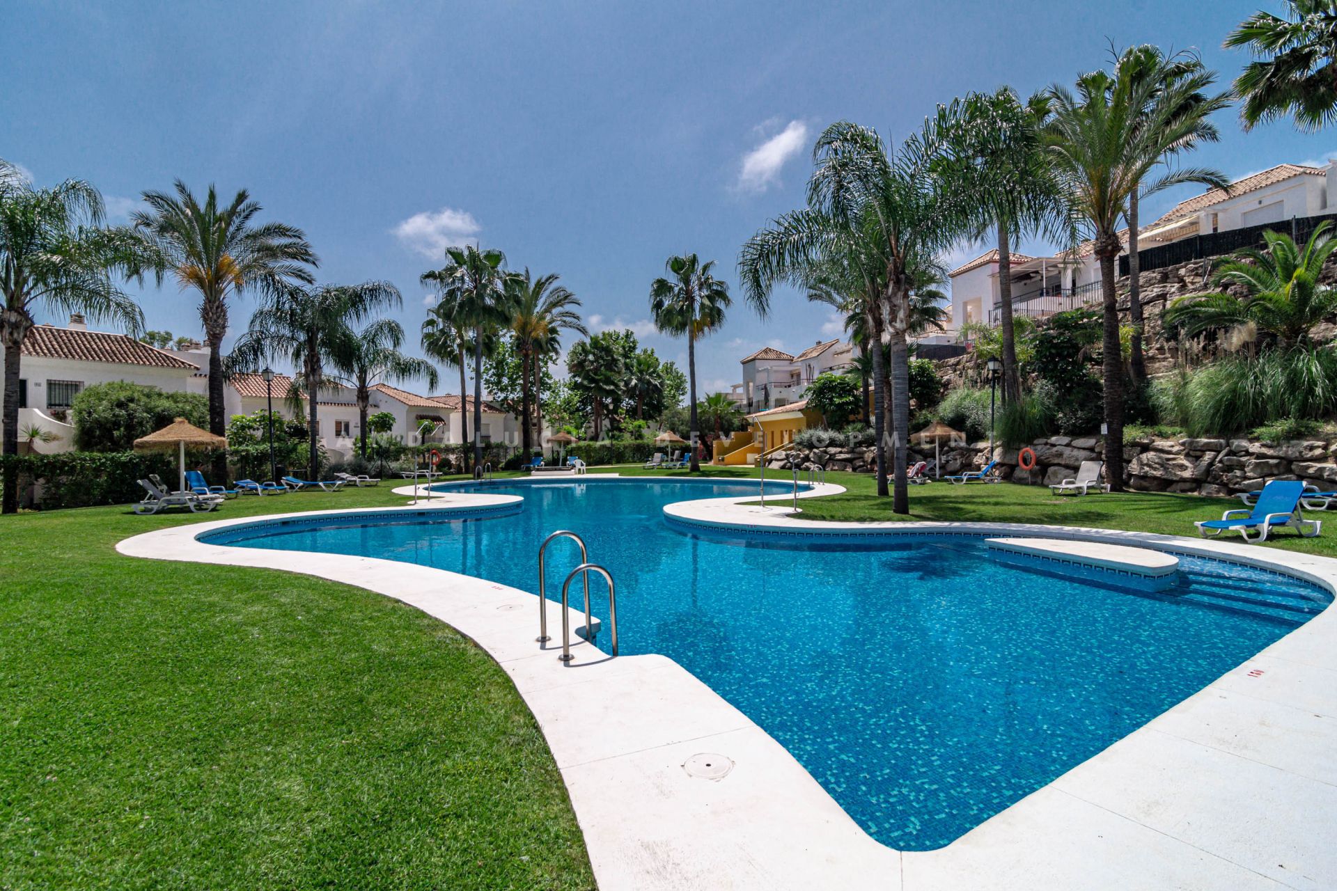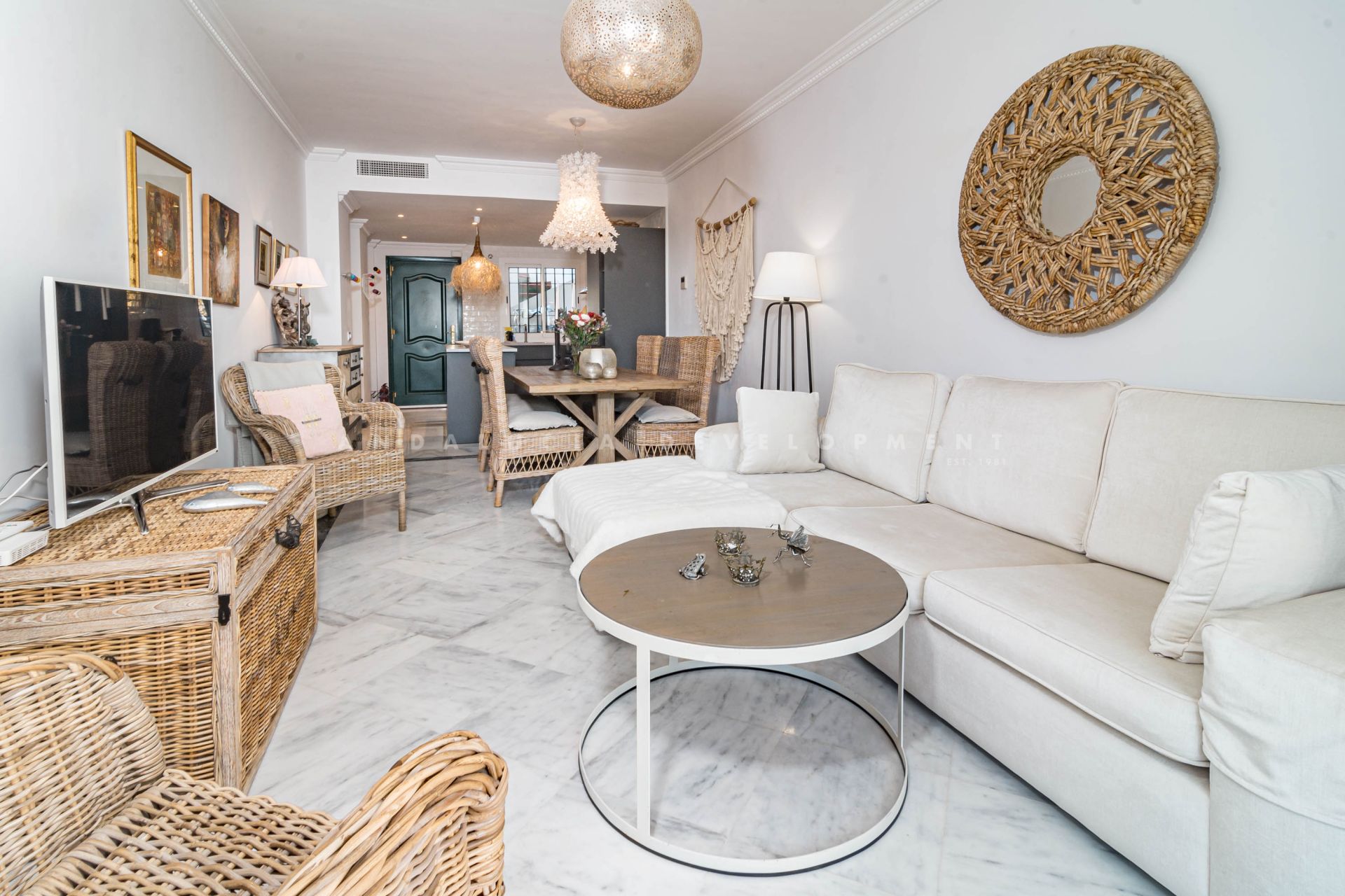 This 2-bedroom, 2-bathroom elevated ground-floor apartment is located in the sought-after gated community of Señorio de Gonzaga, a charming development in the heart of Nueva Andalucia. Built in 2003, the complex consists of 22 blocks and 214 apartments, designed as two-storey buildings offering either ground floor units or top floor apartments. Step inside and you’ll immediately notice the light and airy feel, thanks to the south-facing orientation and open-plan kitchen. The apartment boasts a spacious terrace, perfect for al fresco dining or simply relaxing in the sun. The well-kept gardens and three communal swimming pools provide a tranquil setting, while on-site security and cameras ensure peace of mind. Most properties here feature generously sized terraces with views overlooking the gardens, swimming pool, or La Concha mountain. Parking is available within the gated complex, and each apartment has its own private staircase, adding a sense of privacy.