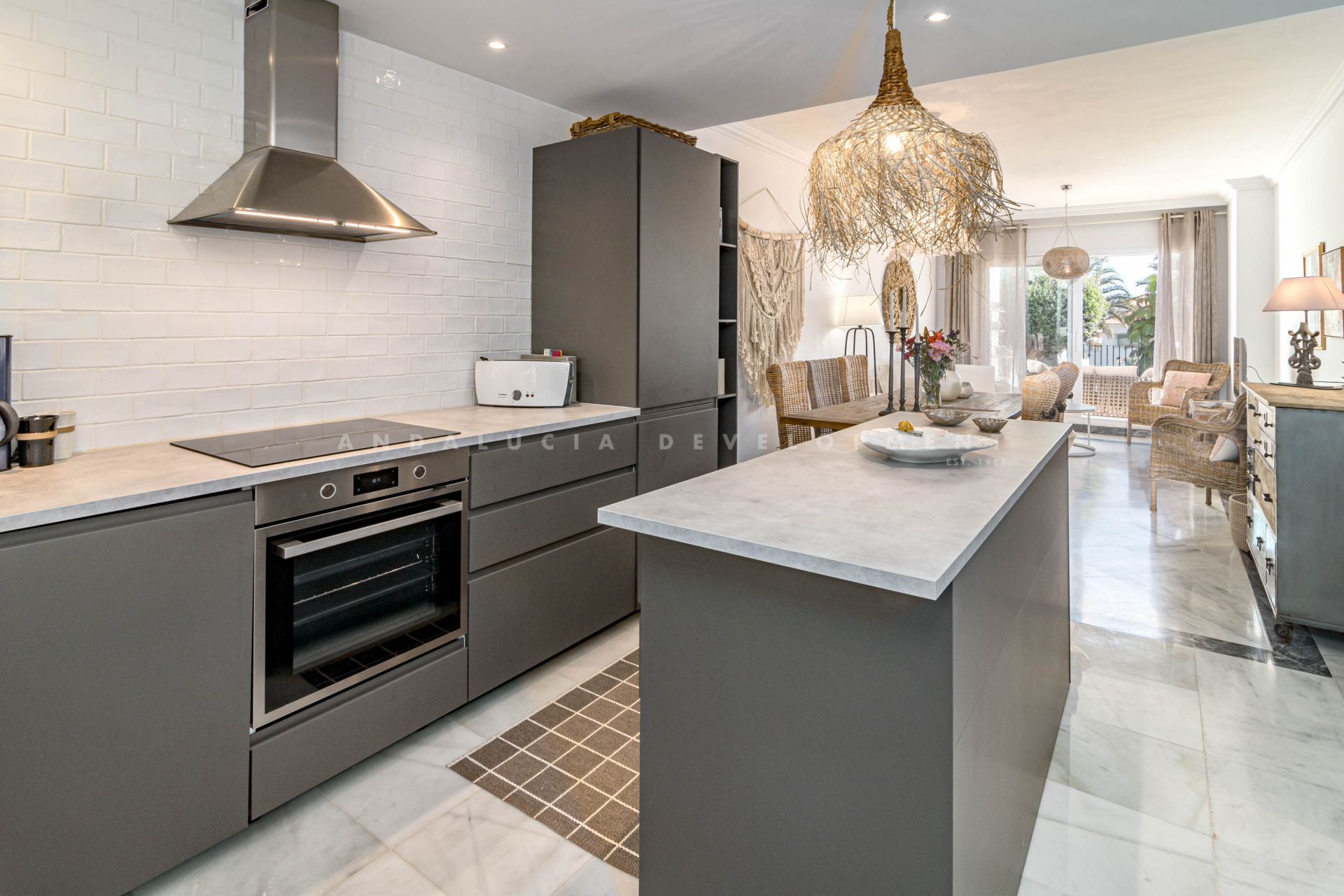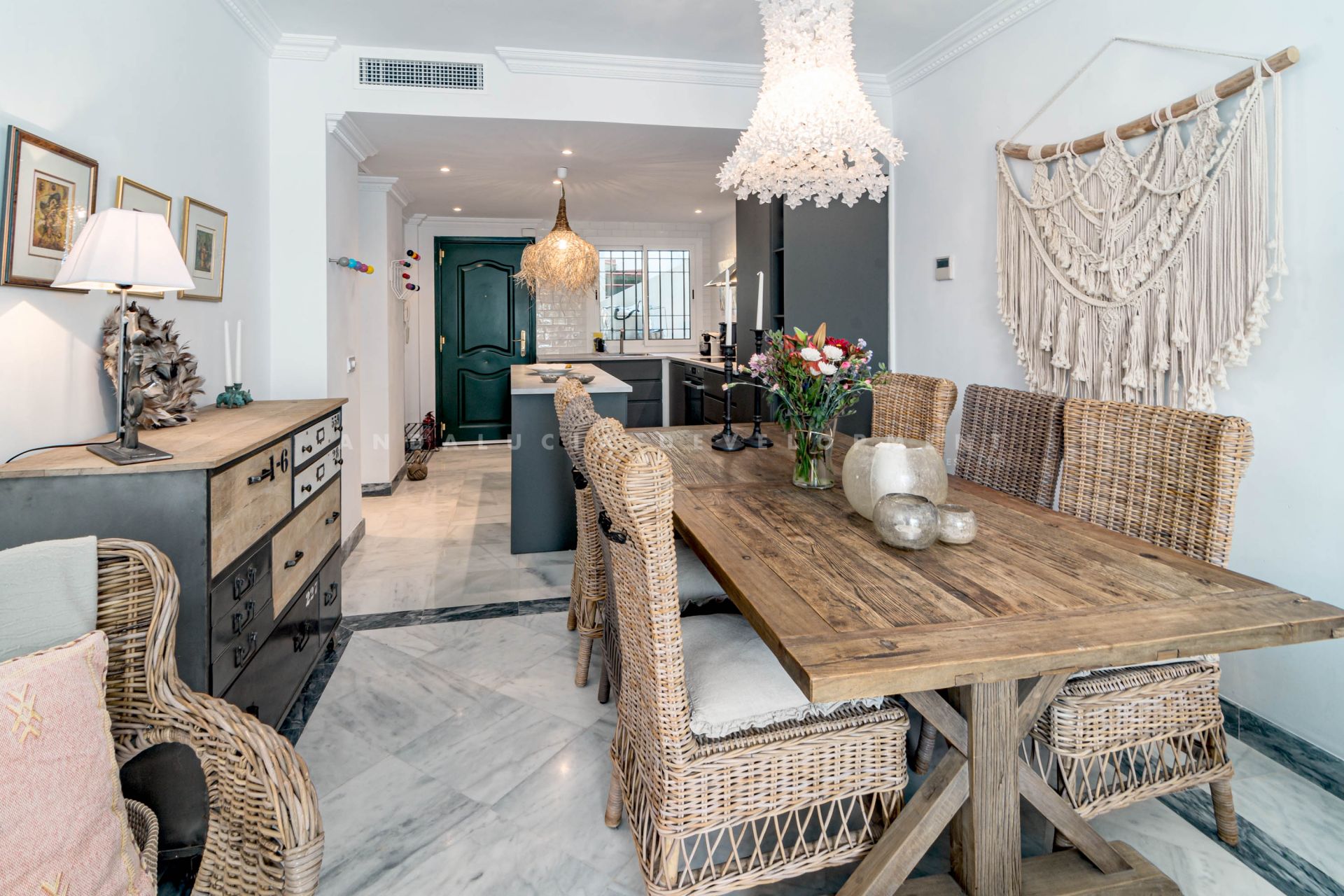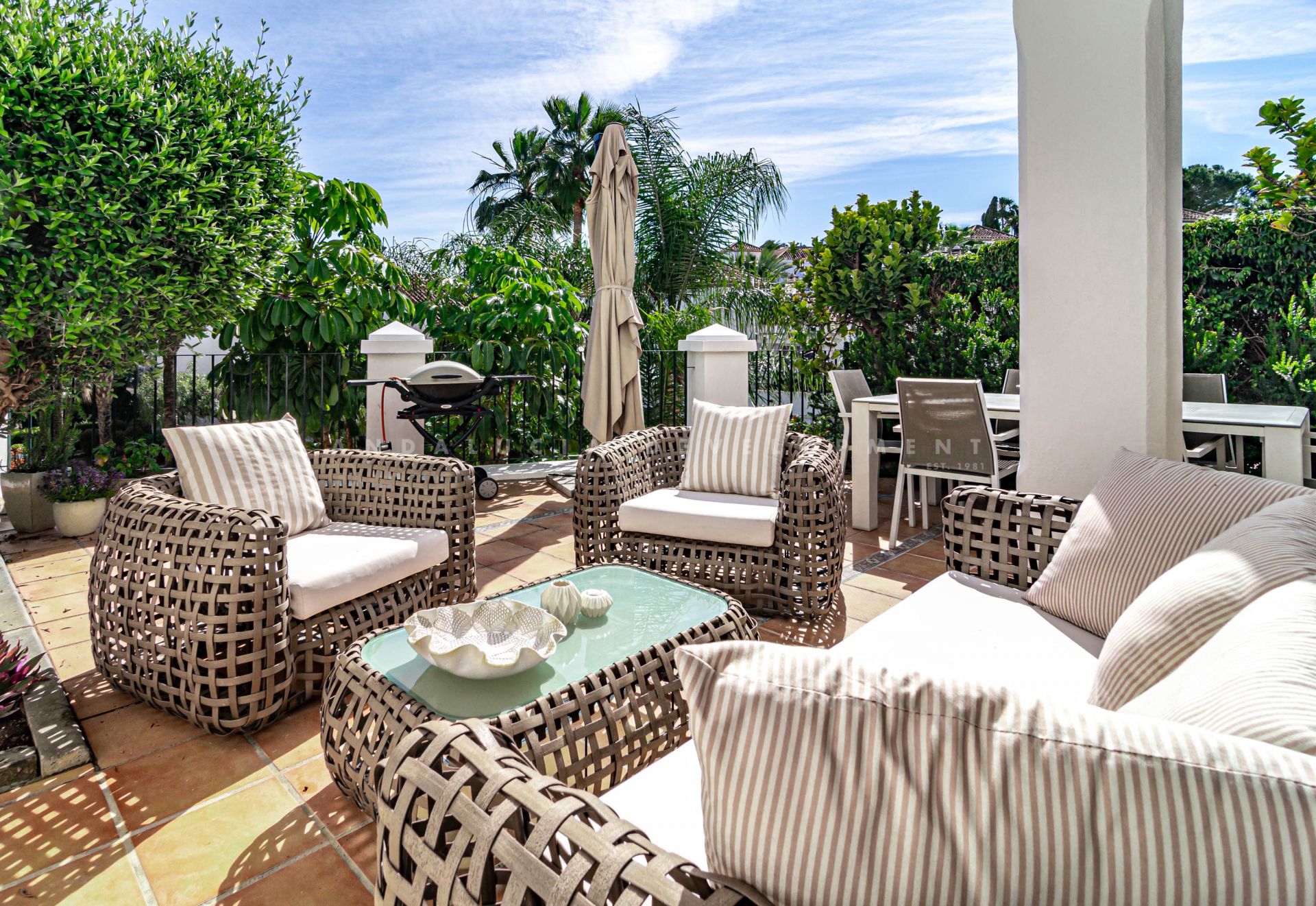 This 2-bedroom, 2-bathroom elevated ground-floor apartment is located in the sought-after gated community of Señorio de Gonzaga, a charming development in the heart of Nueva Andalucia. Built in 2003, the complex consists of 22 blocks and 214 apartments, designed as two-storey buildings offering either ground floor units or top floor apartments. Step inside and you’ll immediately notice the light and airy feel, thanks to the south-facing orientation and open-plan kitchen. The apartment boasts a spacious terrace, perfect for al fresco dining or simply relaxing in the sun. The well-kept gardens and three communal swimming pools provide a tranquil setting, while on-site security and cameras ensure peace of mind. Most properties here feature generously sized terraces with views overlooking the gardens, swimming pool, or La Concha mountain. Parking is available within the gated complex, and each apartment has its own private staircase, adding a sense of privacy.