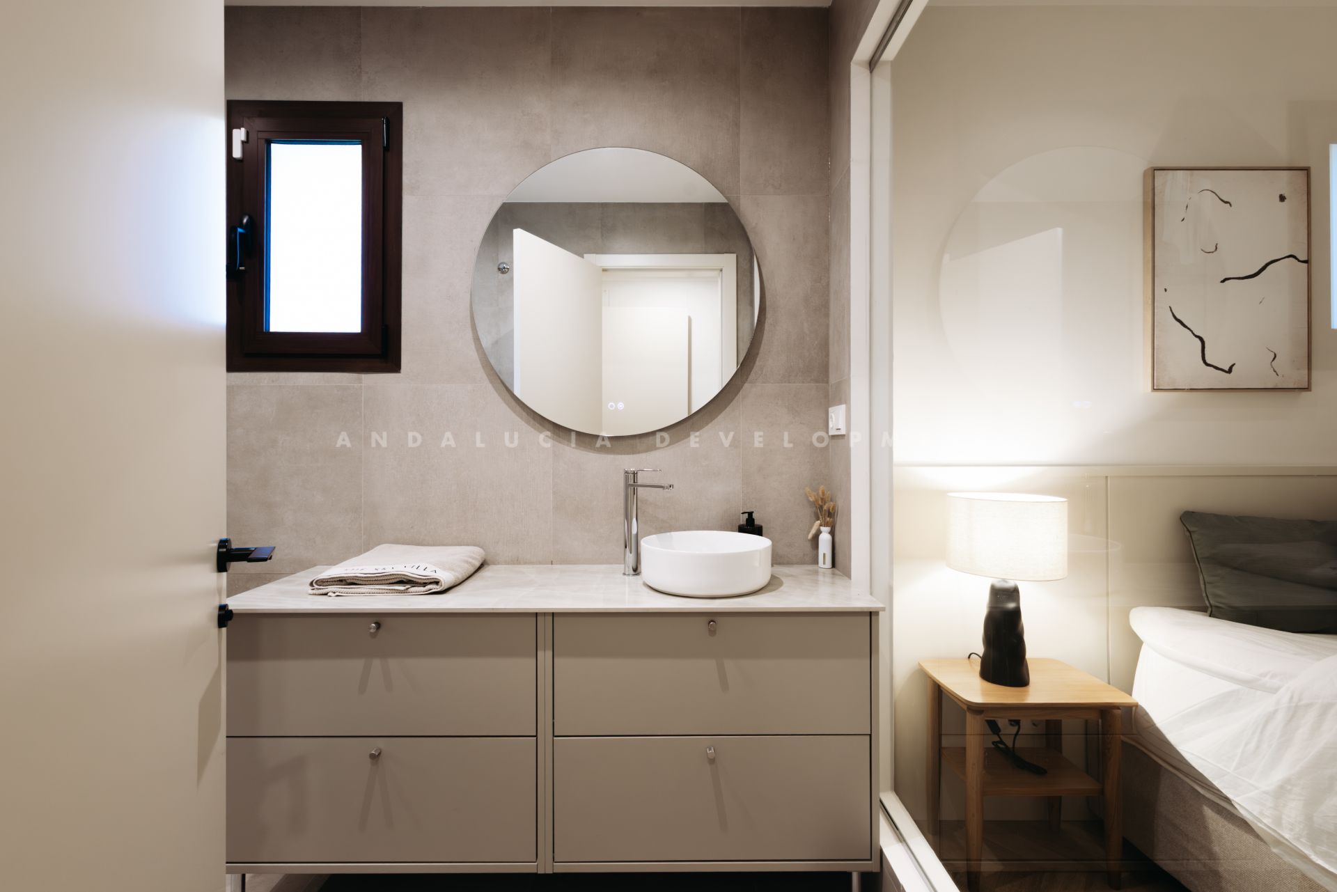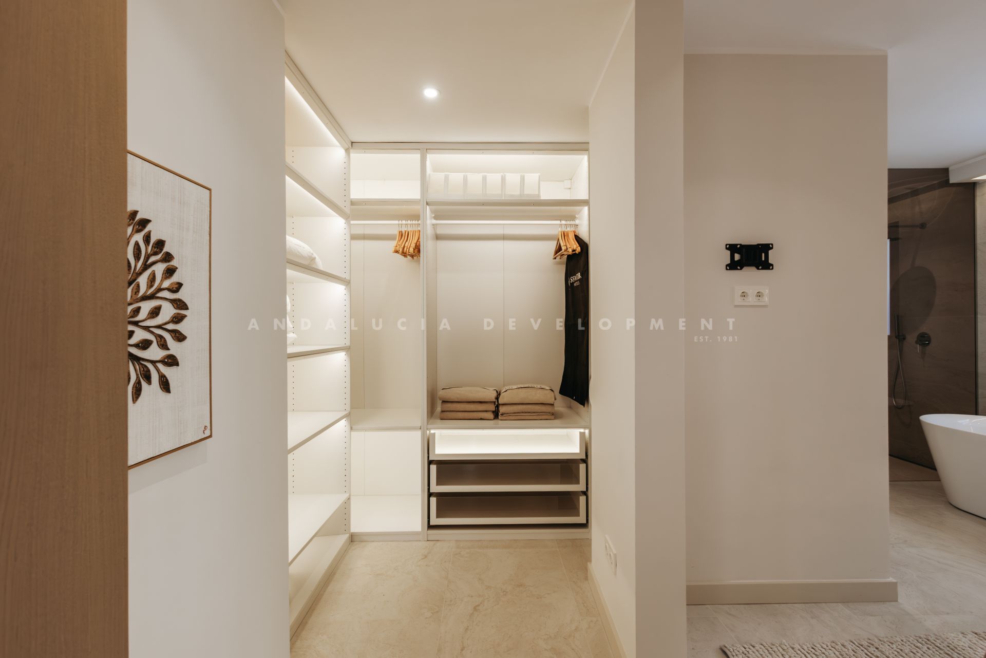The upper level is crowned by an exclusive living room with direct access to the expansive rooftop terrace, where a solarium, generous lounge areas, and an elegant outdoor bar create the perfect setting for relaxation. Large floor-to-ceiling windows provide abundant natural light, and the space is equipped with two wine coolers as well as an electric fireplace with integrated heating. With 360-degree panoramic views over the Mediterranean Sea and Marbella’s stunning landscape, this is truly the ultimate place to unwind.