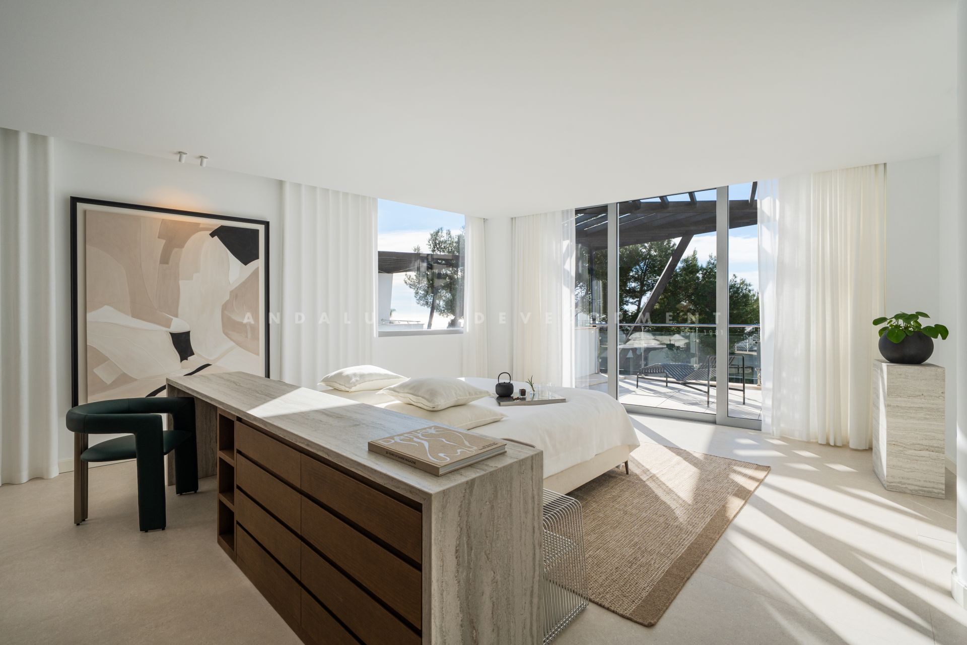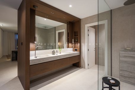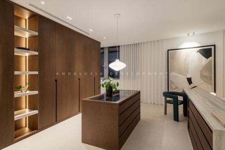 A contemporary residence located within the gated Meisho Hills community in Sierra Blanca. Recently refurbished, the property features an open-plan layout with clean architectural lines, large, glazed openings, and a neutral material palette that combines natural stone, wood finishes, and soft textiles. The main living areas connect directly to a private terrace with pool, creating a seamless indoor–outdoor flow suitable for both daily living and entertaining.