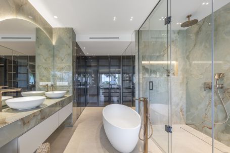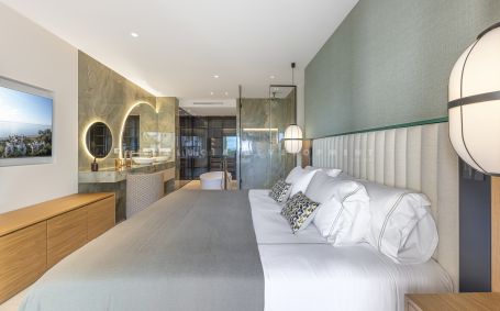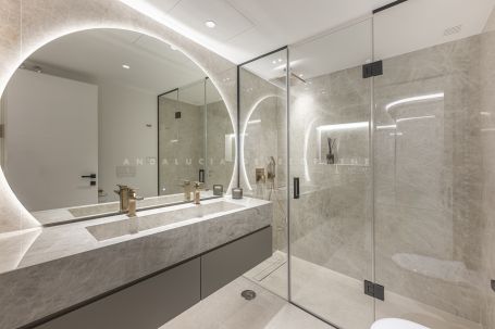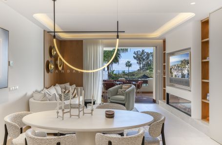Bahía del Velerín is an exclusive residential community ideally positioned between Marbella and Estepona. Residents enjoy a stunning pool area complete with a snack bar, beautifully maintained tropical gardens, and 24/7 security. Its exceptional location provides direct access to one of the area’s most desirable beaches. This fully refurbished apartment enjoys lovely views of both the surrounding landscape and the sea. Featuring underfloor heating throughout and a beautiful terrace, it offers enhanced comfort and a seamless indoor-outdoor living experience. Its contemporary design and premium finishes create a refined and practical living space in every detail. The apartment is enhanced by a range of luxurious features, including an open-plan designer kitchen fitted with premium German appliances, high-quality flooring, elegant contemporary furnishings, an electric fireplace, a Bang & Olufsen sound system, and bespoke built-in wardrobes.