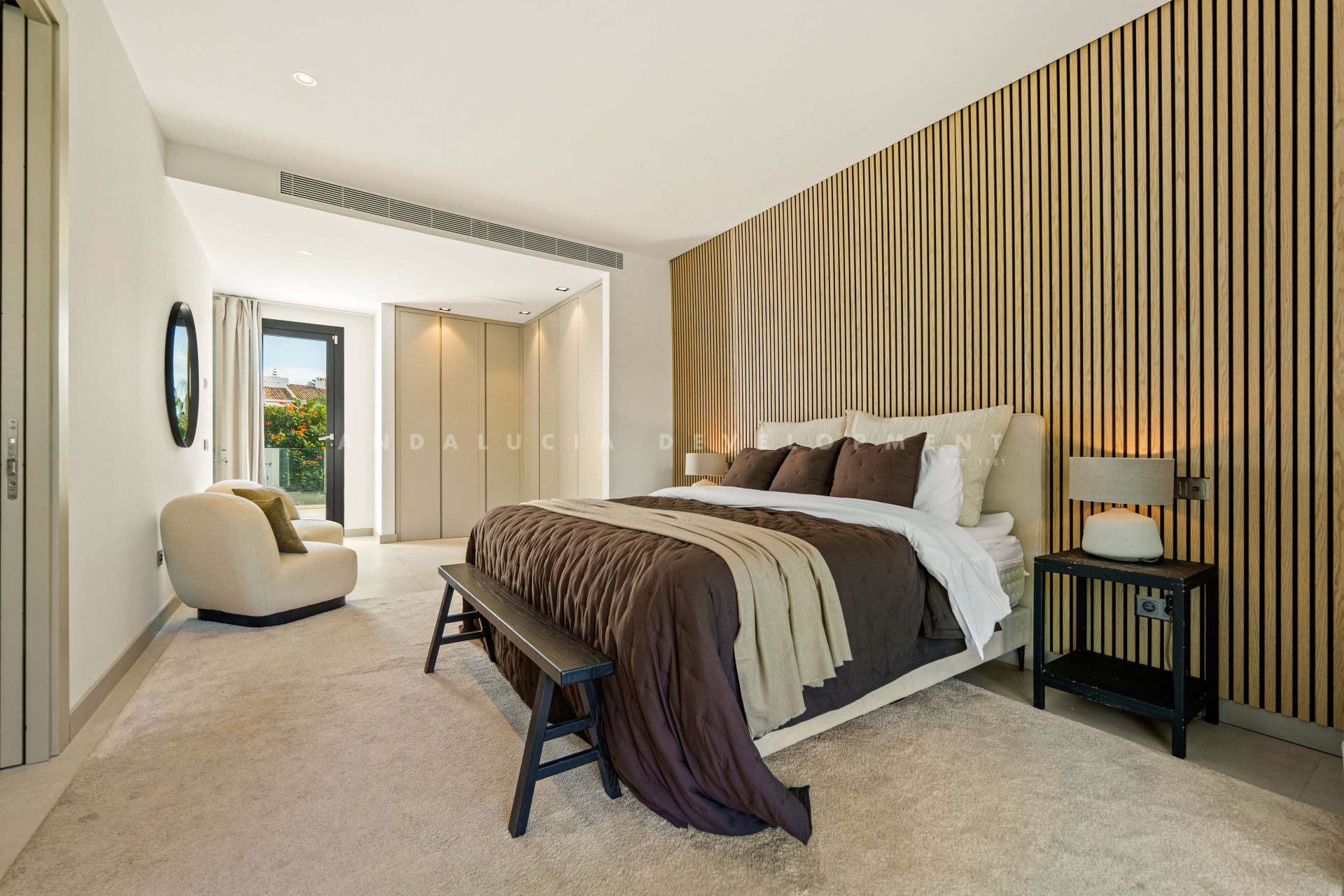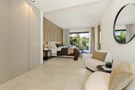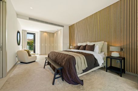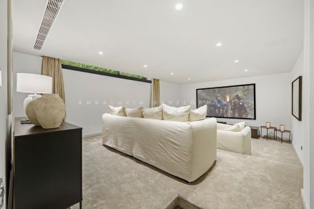 Each bedroom is designed with sophistication and warmth, featuring fitted wardrobes and elegant ensuite bathrooms. Additional highlights include a private cinema and entertainment room, a fully equipped home gym, and a secure private garage. Villa Jardin is an ideal modern residence in one of Marbella’s most desirable locations, offering refined living close to beaches, golf, and all amenities.