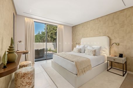 An outstanding brand-new frontline golf designer villa in Nueva Andalucia. Stepping into this residence you are welcomed by a modern and sleek living space with a nice design kitchen in an open plan to the dining and living room. Through the large floor to ceiling glass doors, you´ll get an amazing view over the golf course of Los Naranjos. Furthermore, on this level there are four bedrooms, all en-suite and with its own terrace. The master bedroom with almost 40m² includes a walk-in closet, designer bathroom which is open plan to create that luxurious suite feeling.