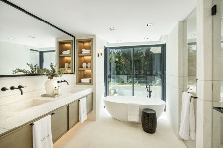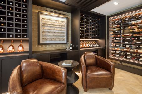 On the lower level, residents can indulge in a range of exceptional amenities. These include a spa with an indoor pool, sauna and Turkish bath, as well as an entertainment room and cinema room for leisure. This villa also benefits from a private garage accommodating up to three cars, accessible via a private driveway. With a prime location in Nueva Andalucia, the property offers convenient access to a plethora of nearby amenities, including international schools, Puerto Banus and the Marbella Golden Mile.