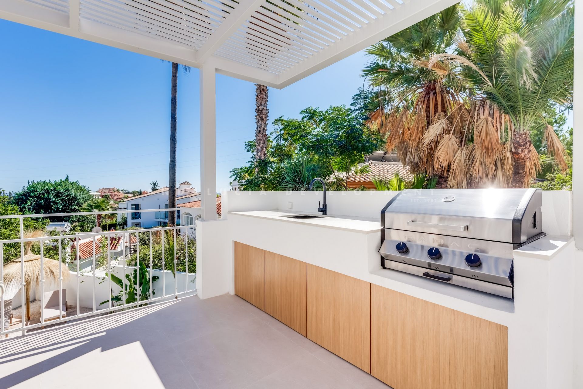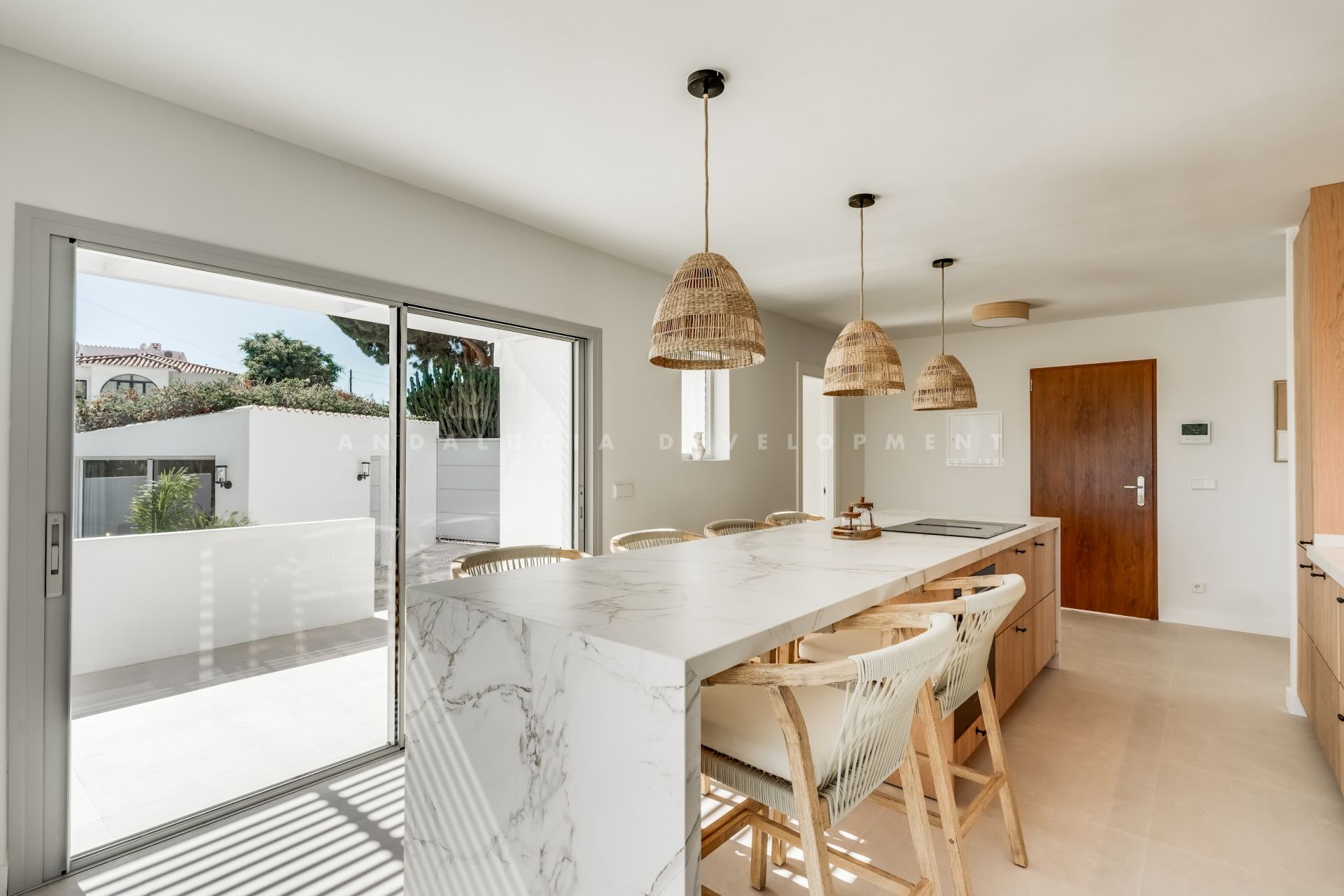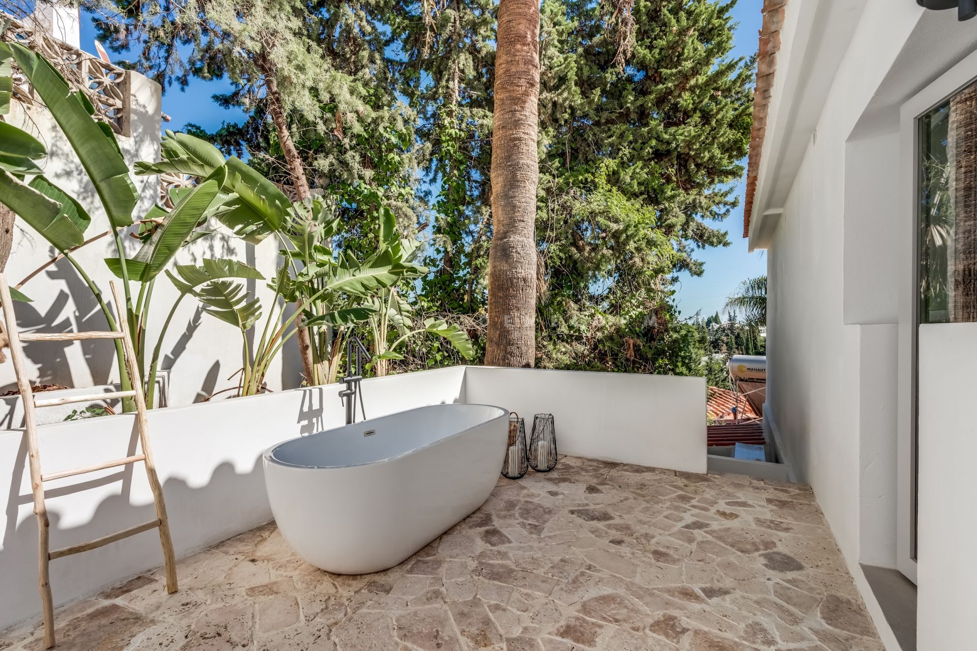 This villa have been totally reformed during the last year and now offers 4 bedrooms and 3 bathrooms, scandinavian kitchen, fantastic terraces and a amazing pool area. You will have undistrupted views to the mountain of La Concha and partial sea views from the house. Bathrooms have underfloor heating, PAX ventilation and of course with high quality furniture. Perfect located in Nueva Andalucia with walking distance to restaurants, supermarket, gym etc. Just a short drive from golf courses and the beach.