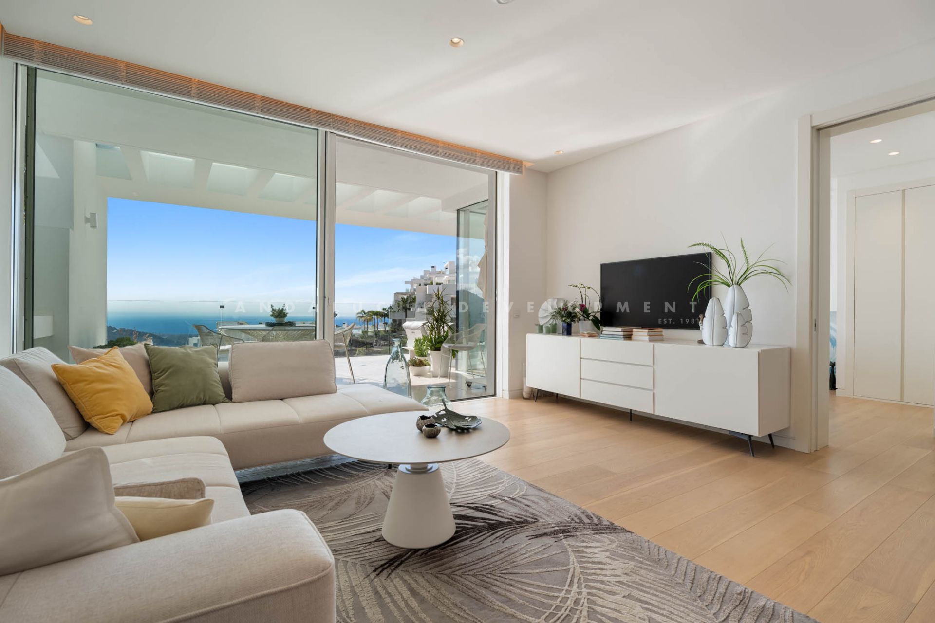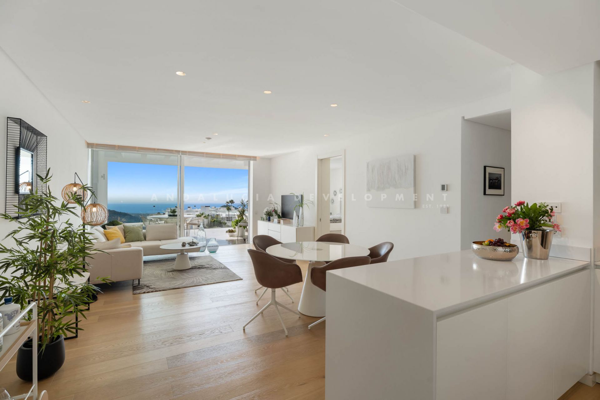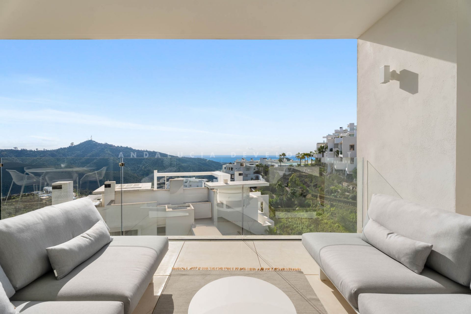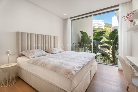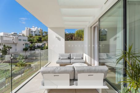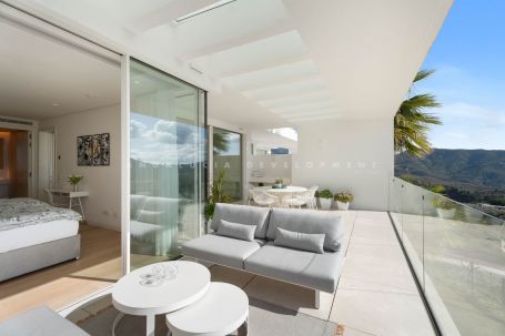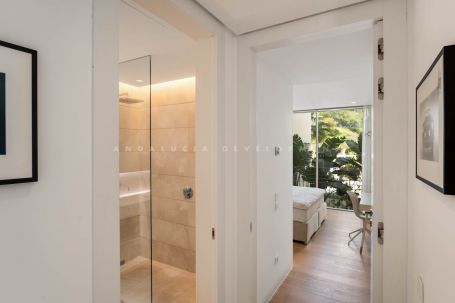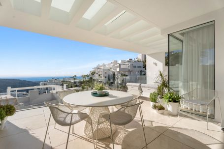 Located in Los Almendros within the prestigious Palo Alto urbanisation in Marbella, this refined two-bedroom apartment offers privacy, sea views, and understated contemporary design in a highly regarded hillside setting. Positioned within a boutique community of only 15 residences, the property ensures discretion and tranquillity while remaining close to the heart of Marbella. The apartment is thoughtfully arranged to maximise comfort and natural light. The open-plan living and dining area flows directly onto a spacious terrace, creating a seamless connection between interior and exterior spaces. From here, breathtaking views stretch across the protected nature reserve, Sierra de Las Nieves, and the coastline. The terrace offers ample space for outdoor dining and relaxation, becoming a central feature of the home throughout the year. The primary suite is designed as a calm and private retreat, complete with its own en-suite bathroom and refined finishes. A second bedroom is served by a separate bathroom, offering flexibility for guests or family while maintaining privacy for all occupants. Clean architectural lines, large windows, and carefully selected materials define the interiors, allowing the surrounding landscape to remain the focal point. Palo Alto is recognised as one of Marbella’s most desirable hillside communities. Its elevated position provides open sea views while offering convenient access to Marbella town centre, renowned golf courses, international schools, fine dining, and the beaches of the Costa del Sol. The development features landscaped communal areas that blend naturally with the surroundings. Residents of Palo Alto benefit from exclusive amenities, including a social club with a Spa, an indoor swimming pool, fully equipped gym, and co-working area. The gated community with 24-hour security ensures peace of mind and a secure environment year-round. This apartment in Los Almendros presents a rare opportunity to acquire a private residence in Palo Alto, combining stunning views, architectural clarity, and proximity to Marbella’s most important destinations. Ideal as a primary residence or refined second home, it represents a compelling offering within Marbella’s luxury property market.