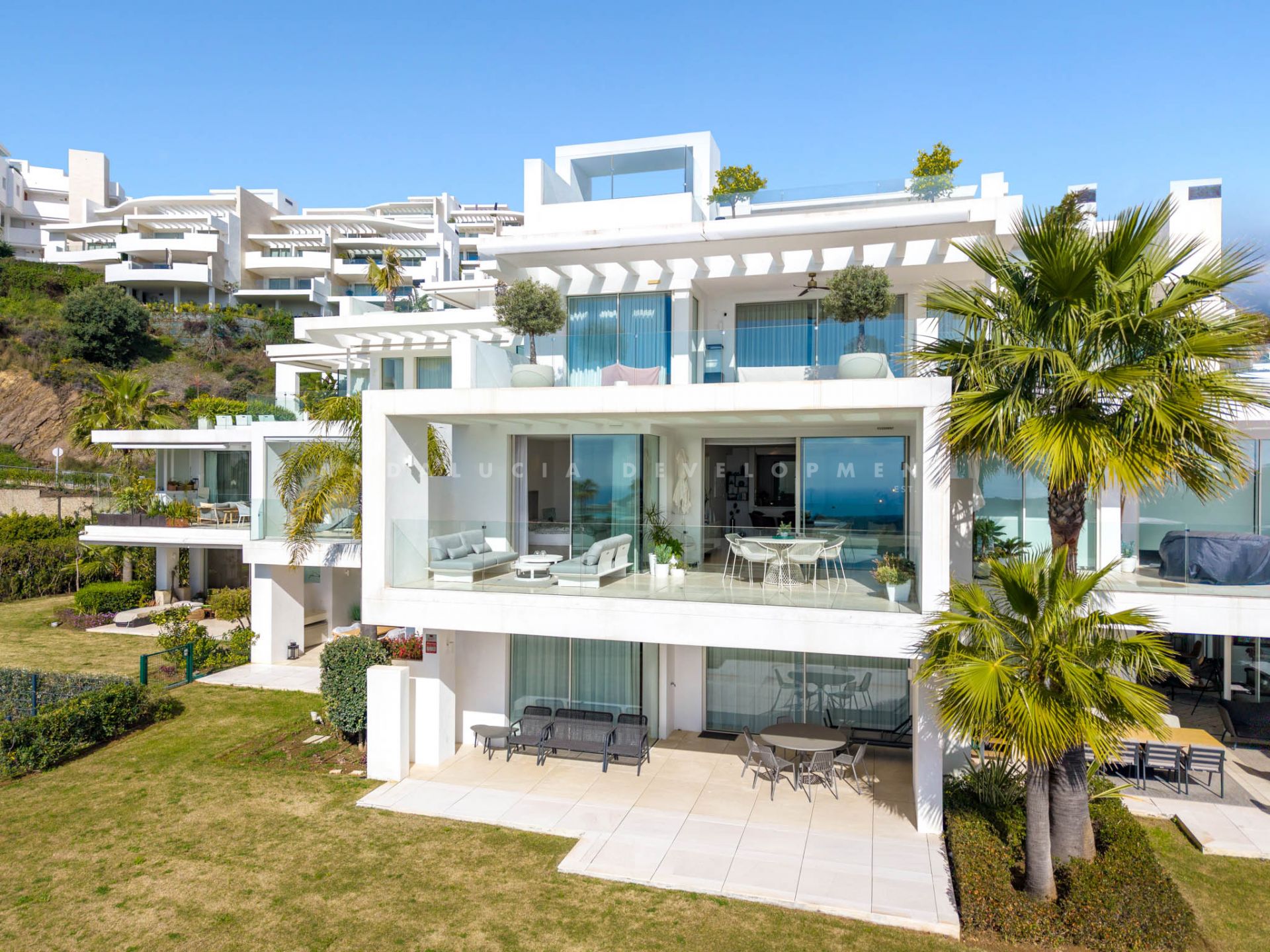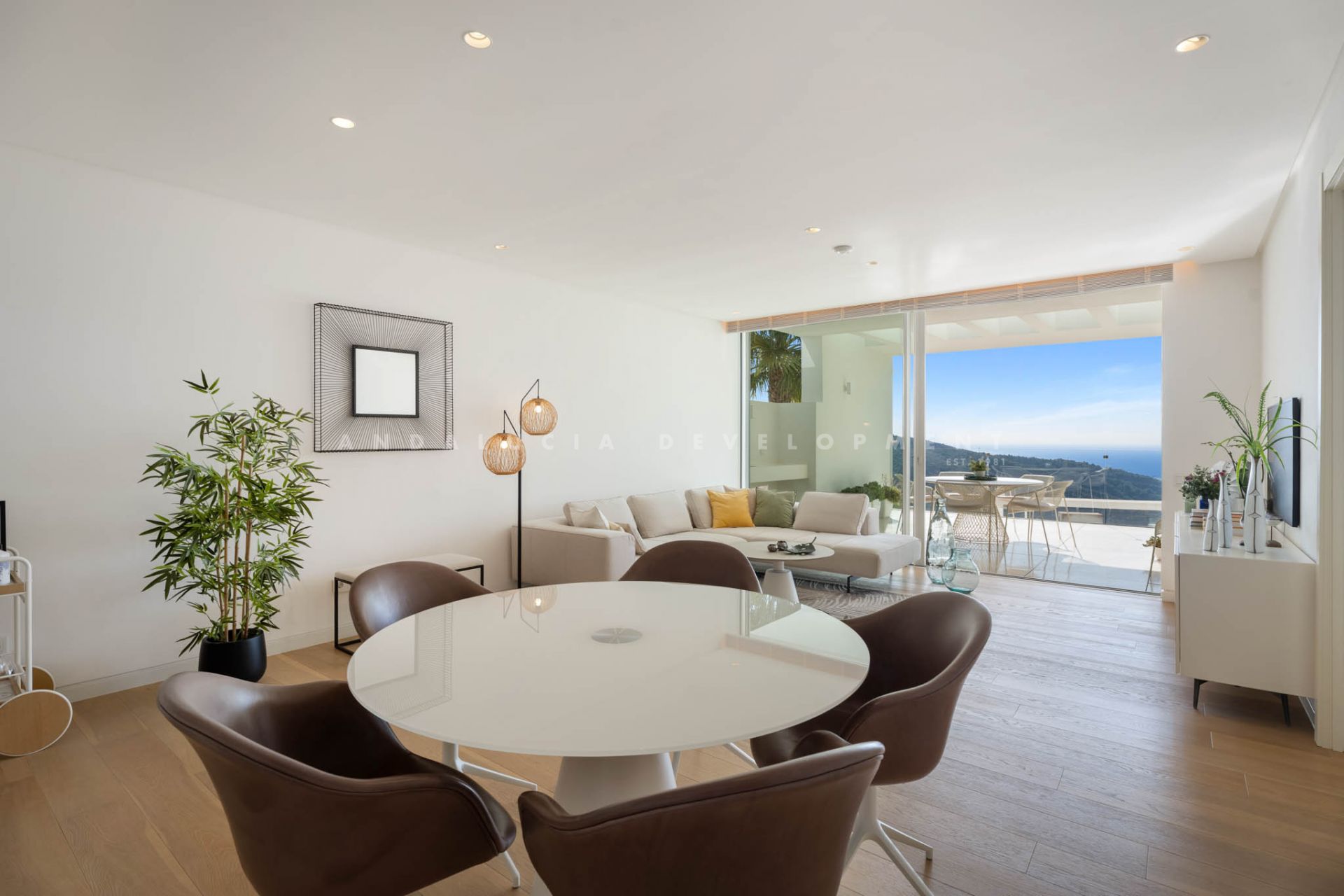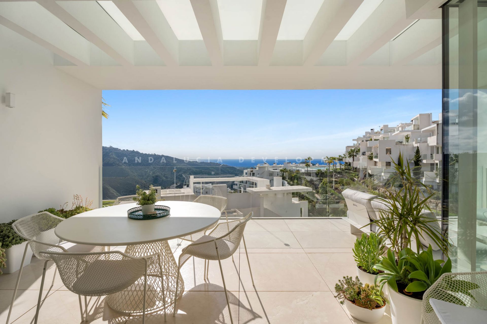 Located in Los Almendros within the prestigious Palo Alto urbanisation in Marbella, this refined two-bedroom apartment offers privacy, sea views, and understated contemporary design in a highly regarded hillside setting. Positioned within a boutique community of only 15 residences, the property ensures discretion and tranquillity while remaining close to the heart of Marbella. The apartment is thoughtfully arranged to maximise comfort and natural light. The open-plan living and dining area flows directly onto a spacious terrace, creating a seamless connection between interior and exterior spaces. From here, breathtaking views stretch across the protected nature reserve, Sierra de Las Nieves, and the coastline. The terrace offers ample space for outdoor dining and relaxation, becoming a central feature of the home throughout the year. The primary suite is designed as a calm and private retreat, complete with its own en-suite bathroom and refined finishes. A second bedroom is served by a separate bathroom, offering flexibility for guests or family while maintaining privacy for all occupants. Clean architectural lines, large windows, and carefully selected materials define the interiors, allowing the surrounding landscape to remain the focal point. Palo Alto is recognised as one of Marbella’s most desirable hillside communities. Its elevated position provides open sea views while offering convenient access to Marbella town centre, renowned golf courses, international schools, fine dining, and the beaches of the Costa del Sol. The development features landscaped communal areas that blend naturally with the surroundings. Residents of Palo Alto benefit from exclusive amenities, including a social club with a Spa, an indoor swimming pool, fully equipped gym, and co-working area. The gated community with 24-hour security ensures peace of mind and a secure environment year-round. This apartment in Los Almendros presents a rare opportunity to acquire a private residence in Palo Alto, combining stunning views, architectural clarity, and proximity to Marbella’s most important destinations. Ideal as a primary residence or refined second home, it represents a compelling offering within Marbella’s luxury property market.