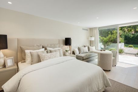 Located in Rocío de Nagüeles, just minutes from Marbella Club and Puente Romano, this villa is a brand-new home that blends modern design with classic Andalusian charm. Designed by three of Marbella’s leading creative teams; Sandon, GC Studio and AMES Arquitectos, the result is a beautifully crafted home that feels truly ready to live in. Positioned on a flat 2,370m² plot with 712m² of internal space, the villa combines sharp architectural lines with warm natural materials and traditional touches, creating a timeless and inviting character. Expansive glass doors open to landscaped gardens, a large swimming pool and multiple outdoor dining and lounge areas. The property also enjoys impressive views of La Concha Mountain. It stands out as one of the only homes on the Golden Mile with a full-size private grass tennis court.