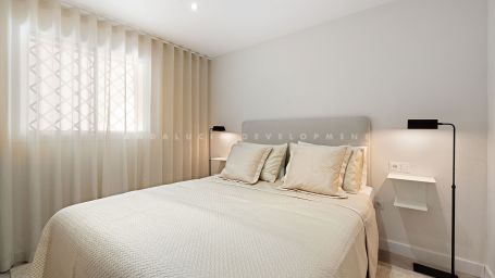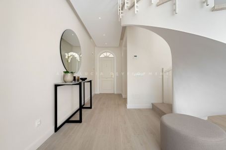 Welcome to this newly fully refurbished duplex penthouse in the poular urbanisation of Aloha Gardens. As you enter you are greeted by the light and the soft colour scheme creating a feeling warmth and luxury. The open plan kitchen, living and dining room opens up to double doors onto the lower terrace which is perfect for that morning coffee. On this floor you also have the 4th bedroom and the combined bathroom and guest toilet. On the 2nd floor you have the large mastersuite with plenty of wardrobe space, large bathroom and a beautiful bay window looking towards Marbella and the sea. 2 guest rooms sharing a family bathroom completes this floor. The 3rd houses the solarium with beautiful sea and mountain views, a top of the line Jacuzzi and a storage room completes this space. The urbanisation has 3 pools, 24 hrs security and is situated close to the Aloha Strip with plenty of restaurants and services. Easy access to the penthouse from the underground parking space.