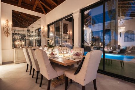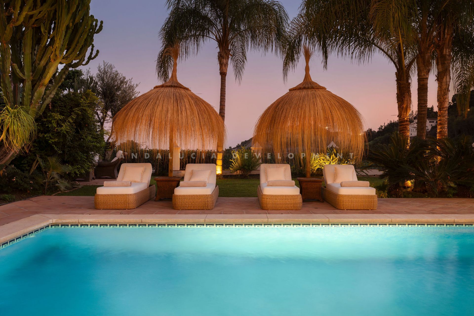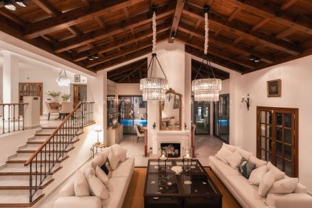 This villa presents a distinguished opportunity to own a luxury residence within the coveted gated community of El Madroñal in Benahavis. Blending timeless Madroñal charm with contemporary updates, this expansive villa offers 531 square meters of built space over two thoughtfully designed floors, perfectly tailored for those who value privacy, Panoramic views, and a harmonious blend of indoor and outdoor living. Completed with a significant renovation in 2024, this home is ready to offer an elevated standard of life in one of the Costa del Sol’s most secure and prestigious enclaves. The property stands out for its exceptional position, panoramic views, and timeless Andalusian character. Surrounded by more than fifty majestic palm trees, this private retreat embodies Mediterranean elegance, peace, and natural beauty.