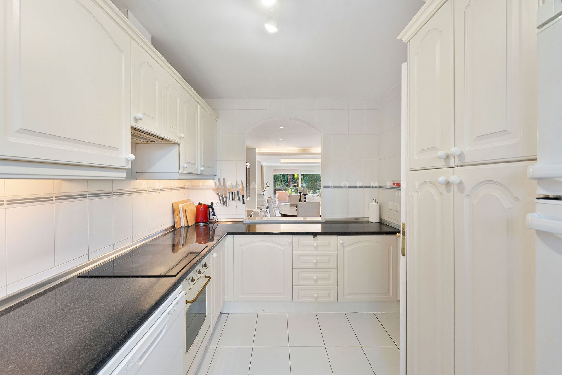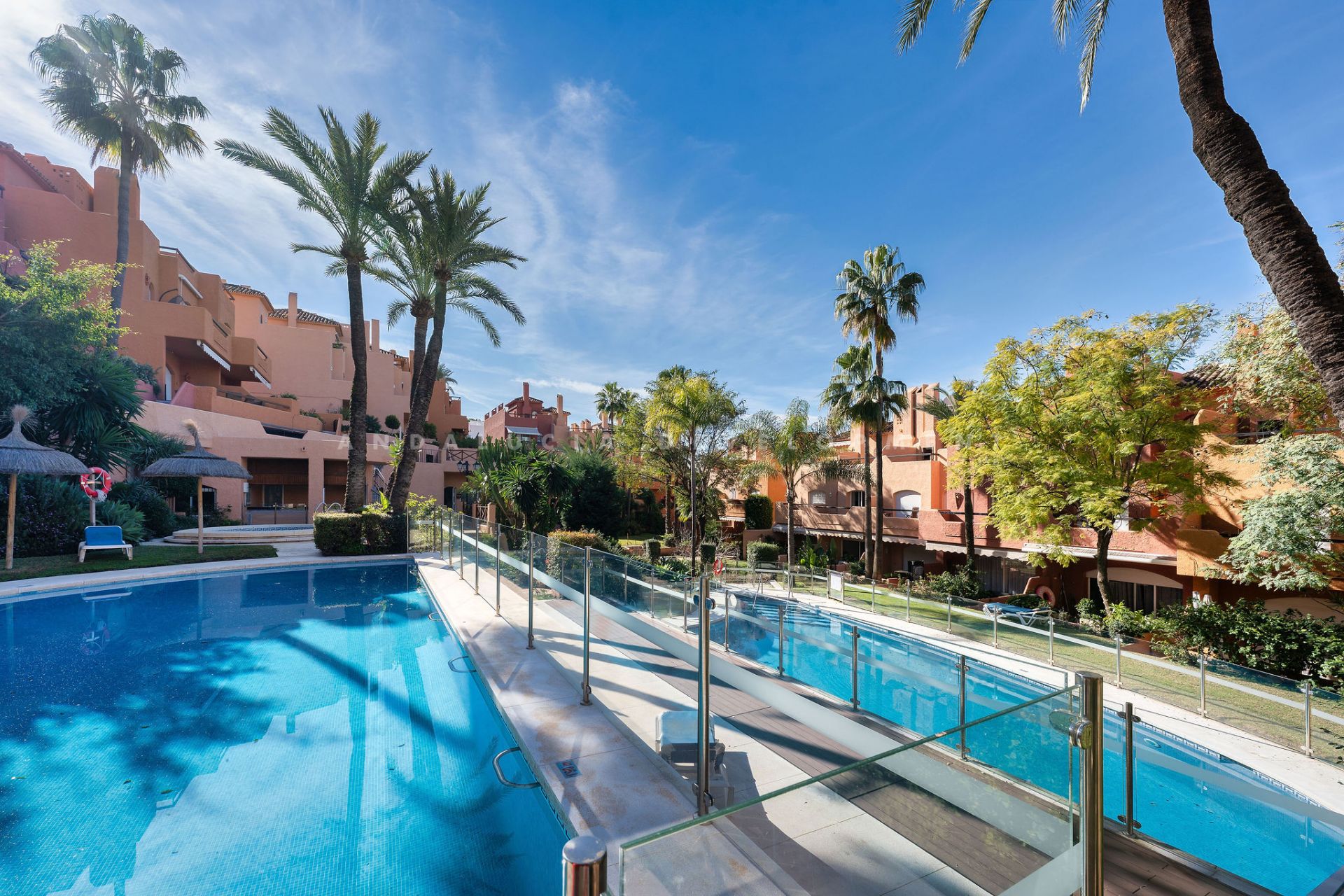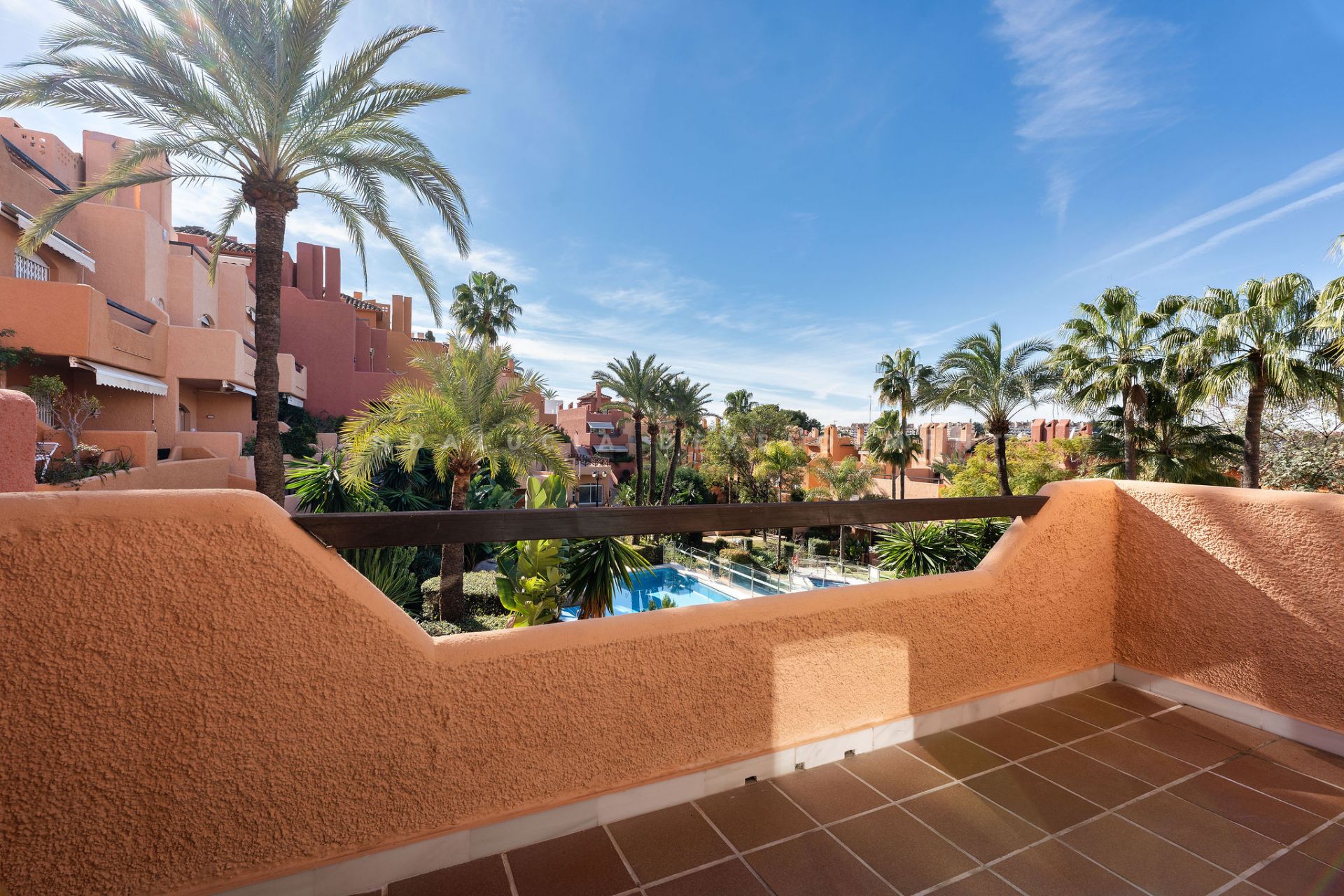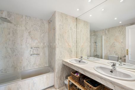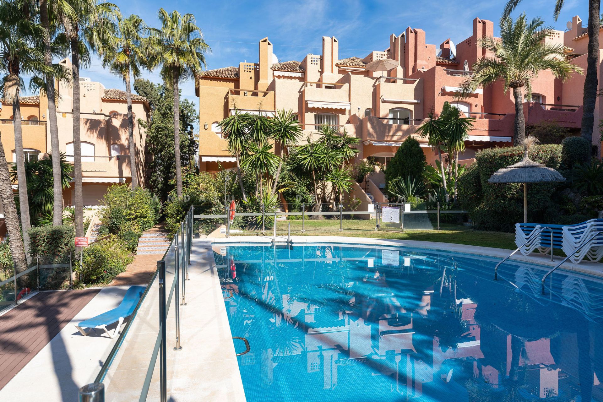 This well presented three-bedroom townhouse spans three spacious levels, combining comfort, space, and a great location in the heart of Nueva Andalucía. A wide selection of restaurants, cafés, bars, and boutiques are within walking distance, while Puerto Banús, sandy beaches, and renowned golf courses are just minutes away. The main floor features a well-sized kitchen with a separate utility room and a split-level dining and living area with an open fireplace. Doors lead to a private terrace with direct access to the communal gardens and swimming pool. All three generous bedrooms have private terraces. The top-floor suite stands out with a large private terrace and an additional terrace with built-in BBQ and open garden views — perfect for outdoor dining and entertaining. Additional features include a private driveway, spacious garage, three en-suite bathrooms, and a guest wc. Located within the sought-after El Palmeral community of just 46 townhouses, residents enjoy two swimming pools, a heated outdoor jacuzzi, sauna, gym, and beautifully maintained gardens in a secure and peaceful setting. A superb opportunity to own a large home in one of Marbella’s most desirable areas.