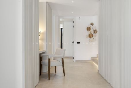 Step into refined Mediterranean living with this stunning fully furnished villa, ideally located just a short walk from the prestigious Guadalmina Golf Club and minutes from the beach. Whether you’re searching for a family home, a holiday retreat, or a premium investment, this property offers the perfect blend of comfort, style, and convenience. Property Highlights include 4 spacious, sun-filled bedrooms along with 4 modern bathrooms. The villa has a sleek open-plan kitchen with a central island and top-tier appliances leading onto an expansive living and dining area with seamless access to the terrace. There is a beautifully landscaped garden with a private pool, and a large rooftop terrace with sea and mountain views. Extra luxury features of the villa is that is sold fully furnished & move-in ready! The wardrobes are built in and illuminated with LED features. There is a large covered garage for one car, and a charging point for sustainable living. Also space for up to even 3 cars more inside the gate! Nestled in a tranquil yet accessible area, this villa is a short drive to the beach. Enjoy the peace and privacy of a prestigious neighborhood while staying connected to the best of Costa del Sol.