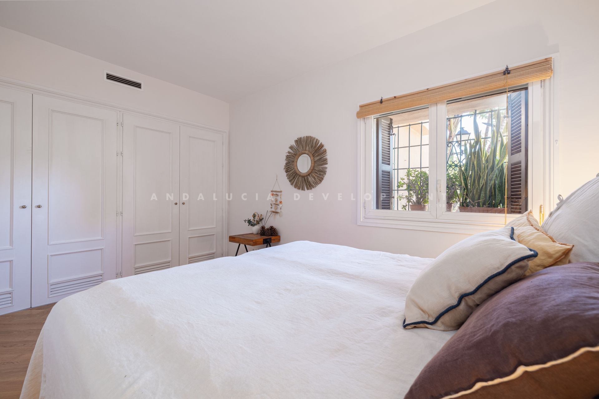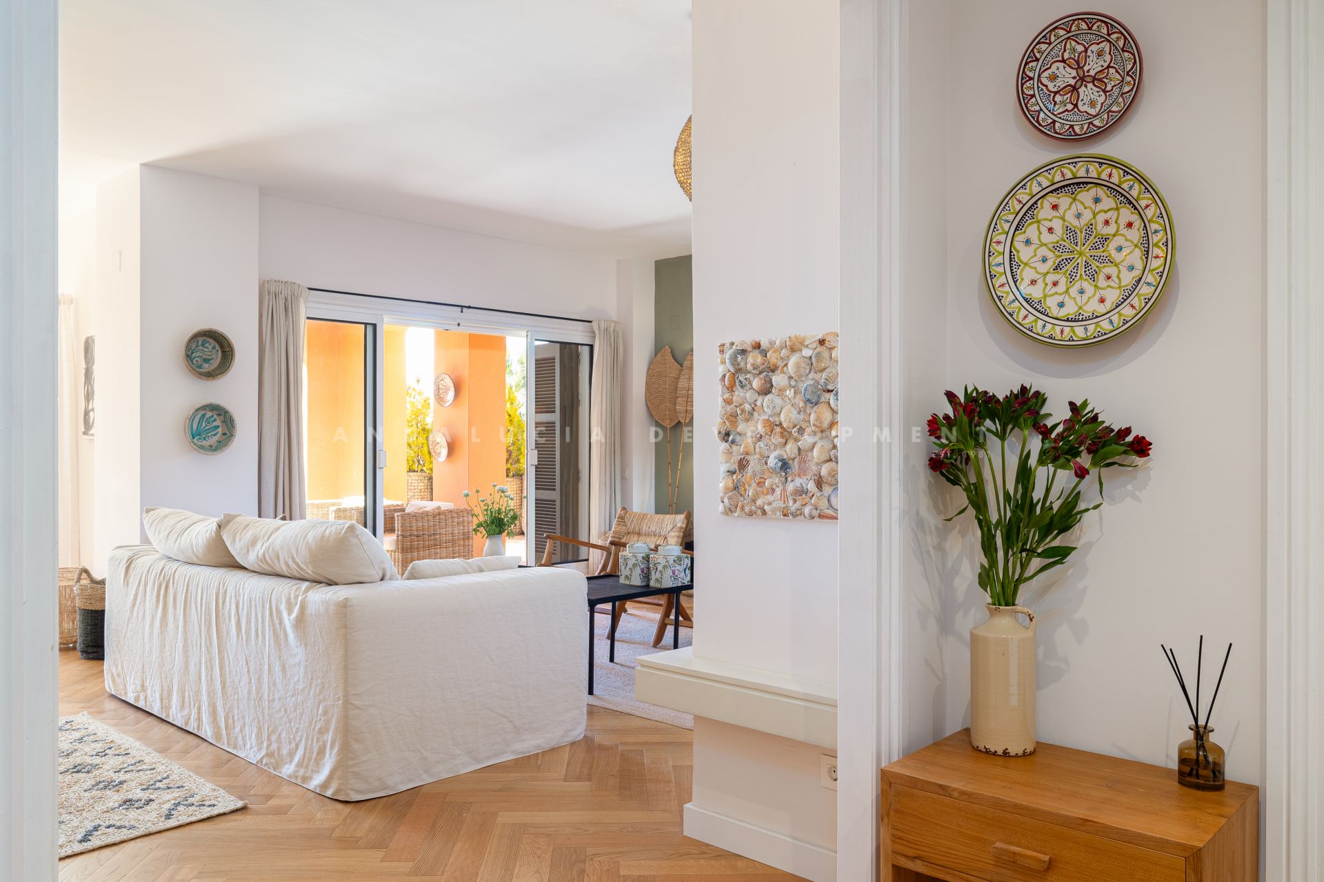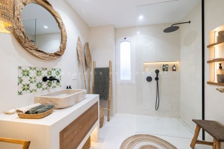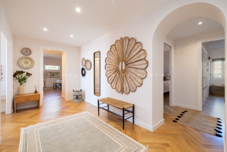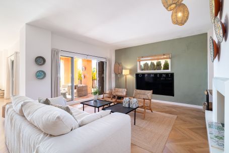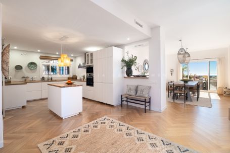 Fully renovated elevated ground-floor apartment located in La Cerquilla, one of the most established and sought-after residential areas of Nueva Andalucía, within the gated community of Les Belvederes. The property offers an interior built area of 215 m² and features three bedrooms, two bathrooms with underfloor heating, and one guest toilet. The layout is well distributed, beginning with a generous entrance hall that ensures privacy from the main living areas. The spacious open-plan living, dining, and kitchen area provides a bright and functional environment with direct access to the terrace. A key feature of the property is its impressive 90 m² south-facing terrace, offering ample space for a dining area, lounge seating, and sunbeds. The terrace enjoys open panoramic views of the Mediterranean Sea, surrounding greenery, Gibraltar, and the African coastline. Unlike many other units within the community, which require navigating numerous stairs and offer no lift access, this apartment benefits from easy, step-free access directly from the main gate, making it particularly practical and convenient. The gated urbanisation offers 24-hour security, an outdoor swimming pool overlooking the sea, paddle tennis courts, a gym, and a sauna. La Cerquilla is located in the heart of Nueva Andalucía’s renowned Golf Valley, close to several prestigious golf courses, international schools, restaurants, and Puerto Banús. The property is ideal as a permanent residence, holiday home, or investment opportunity in a prime Marbella location.