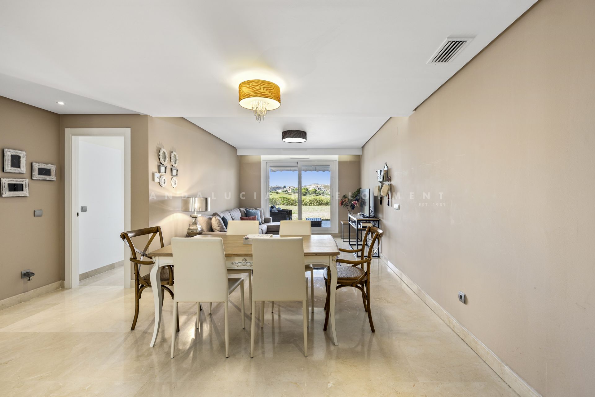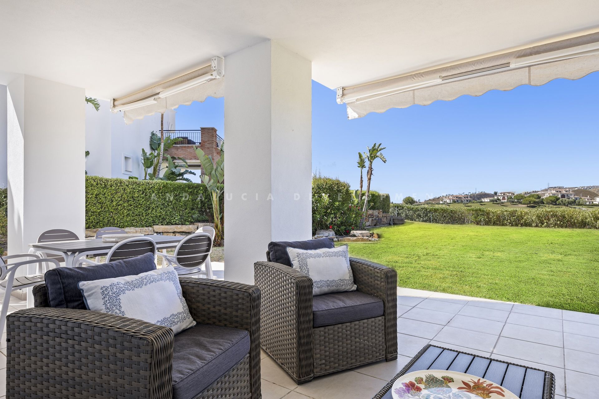 Welcome to Los Robles de los Arqueros, a charming Mediterranean style community within the prestigious Los Arqueros Golf and Country House development. This exclusive low-density development has only 90 units of 2 and 3-bedroom apartments in elegant 3-story buildings. This 3-bedroom, 2-bathroom ground floor apartment is a spacious, tranquil retreat with impeccable interiors, high-end finishes, air conditioning, cream marble floors and a designer kitchen. The highlight of this home is its large private terrace of 48 m2, which opens to a magnificent garden space for private use. Here, you can enjoy with great privacy the stunning open views of the golf course and the sunsets that make this property something truly special. The property is sold with part of the furniture. The urbanization has two large swimming pools, a children's pool and beautifully landscaped common areas. For greater convenience, the property is sold with an underground parking space and a storage room . The property is located a minutes drive from Los Arqueros Golf and Country Club and its tennis courts, gym, restaurants, golf shop and driving range. A 5-minute drive away is also the lively town center of San Pedro de Alcántara, with its charming beaches and new beach clubs, making this location the perfect place for both year-round living and a holiday home.