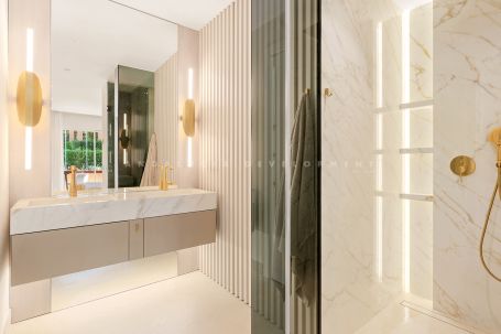 Located in one of the most prestigious beachfront communities on the New Golden Mile, this fully renovated 4-bedroom apartment in Los Granados del Mar redefines luxury coastal living. Just moments from the heart of Estepona and the vibrant new Laguna Village complex, the property offers the perfect blend of serenity, sophistication, and convenience. Positioned on a southwest-facing frontline beach plot, the apartment boasts uninterrupted views of the Mediterranean Sea, with direct beach access from the meticulously maintained, secure grounds.