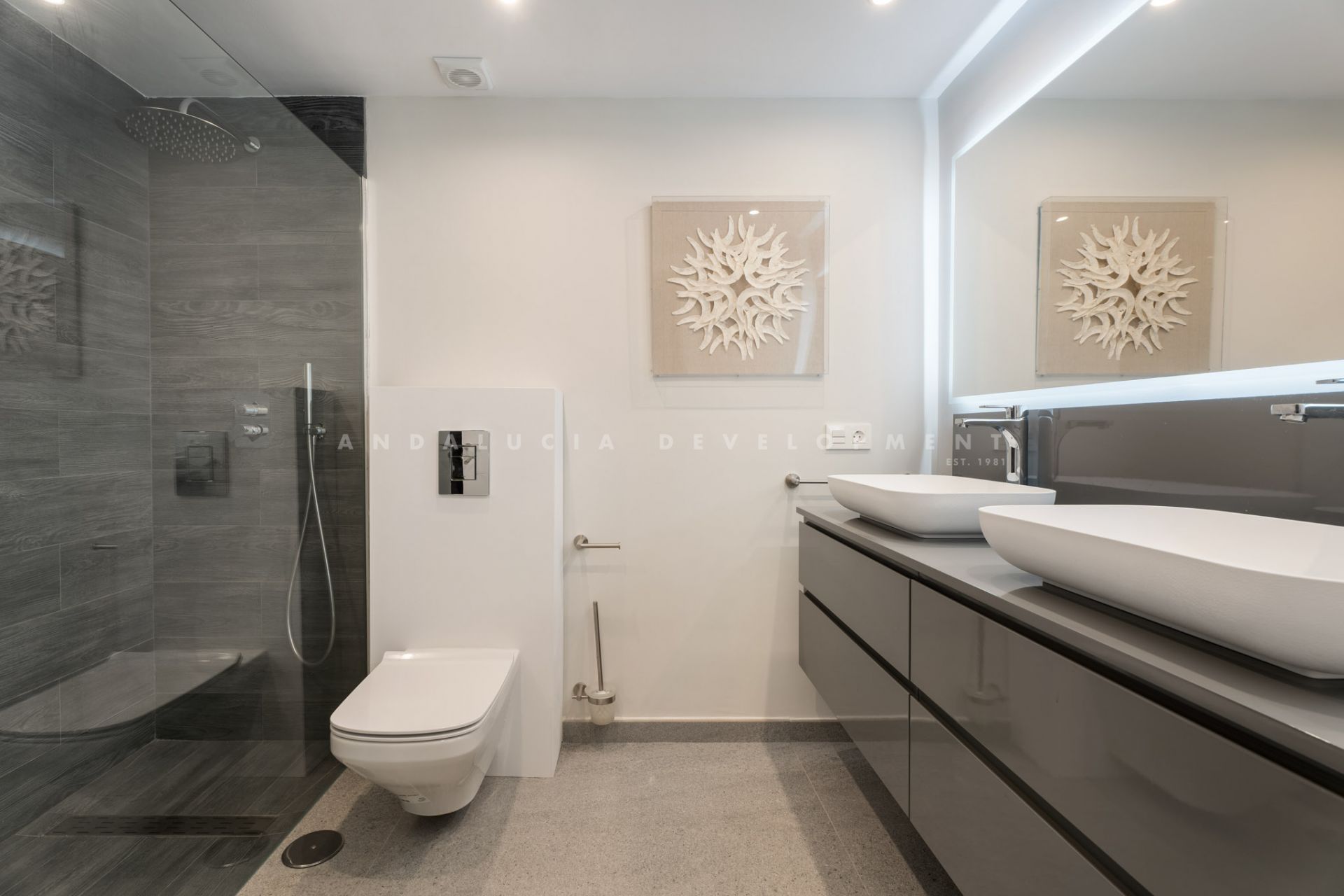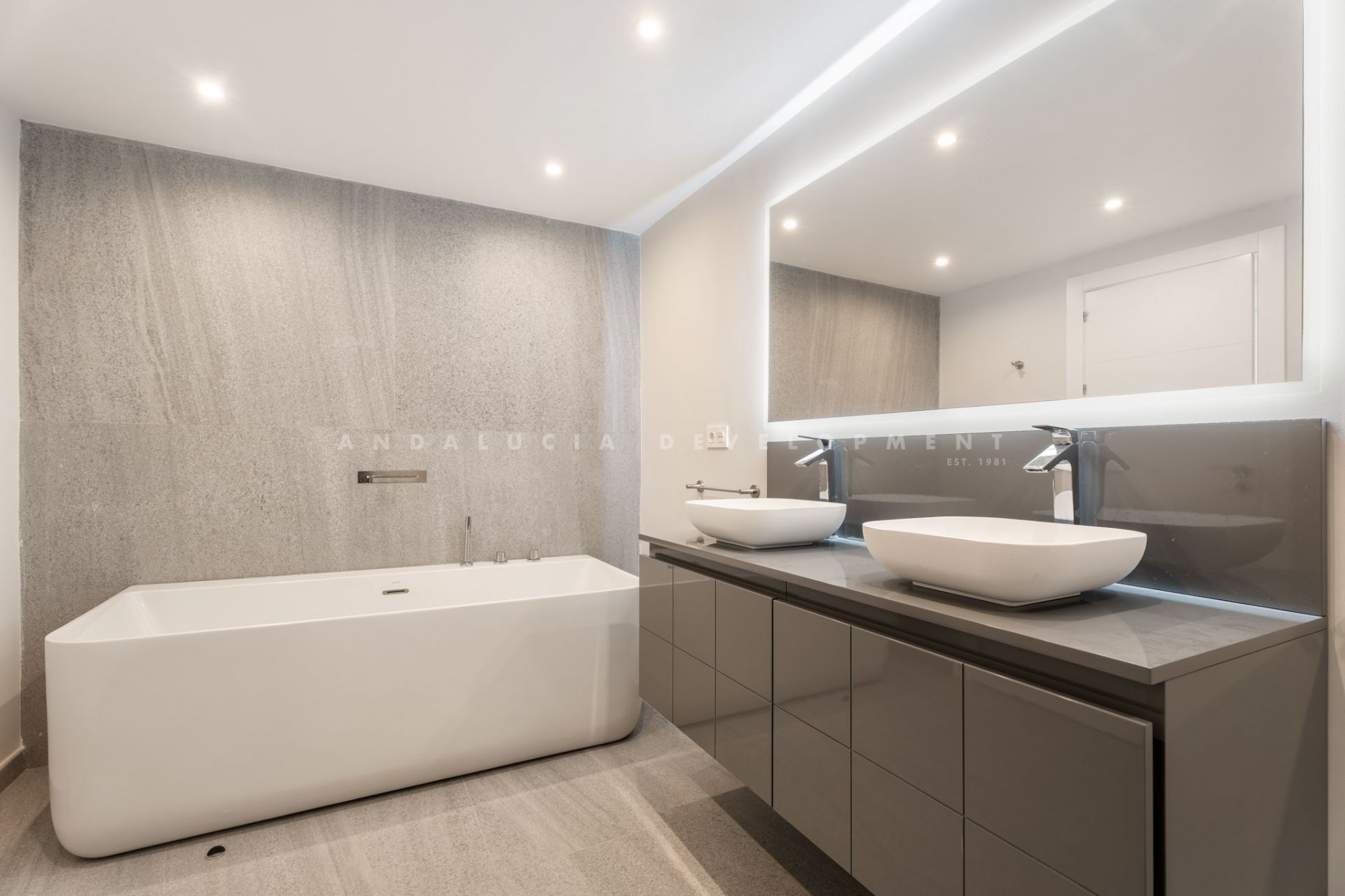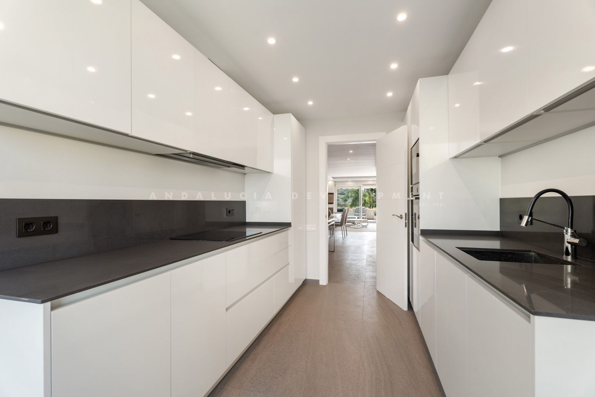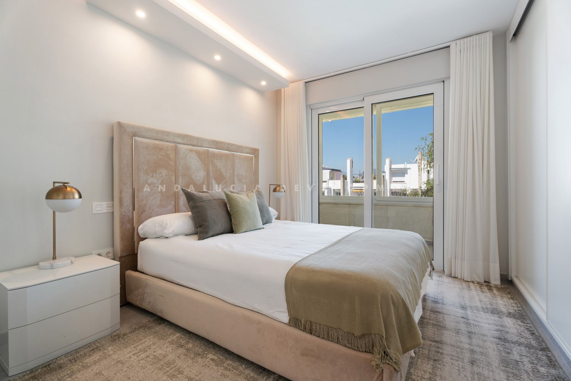 Nestled in the heart of Nueva Andalucía, within the sought-after community of Los Granados Golf, this elegant middle-floor apartment seamlessly blends modern sophistication with Mediterranean charm. Recently renovated and presented in turnkey condition, the property offers a generous 120 m² of beautifully designed living space. The open-plan layout includes two spacious bedrooms, two stylish bathrooms plus a separate guest toilet, and a sleek, fully fitted kitchen that flows effortlessly into the bright living and dining area. Offered fully furnished, this home is ready for immediate enjoyment. A standout feature is the spacious 36 m² terrace, perfect for alfresco dining, relaxing, or entertaining under the Marbella sun, with tranquil views overlooking lush tropical gardens and a sparkling communal pool. Residents of this exclusive gated community enjoy a wealth of premium amenities, including manicured gardens, a beautiful outdoor pool, a newly built indoor heated pool, jacuzzi, sauna, gym, and 24-hour security for complete peace of mind. Additional conveniences include lift access, private underground parking, and a dedicated storage room. The primary suite boasts fitted wardrobes and an elegant en-suite bathroom, while the second bedroom is ideally positioned near the second bathroom, perfect for family living or hosting guests. Ideally situated, overlooking Las Brisas Golf course and just moments away from renowned golf courses, as well as Marbella’s vibrant town centre, stunning beaches, top restaurants, and upscale shopping, this residence offers not only a luxurious lifestyle but also excellent investment potential in the heart of Nueva Andalucia.