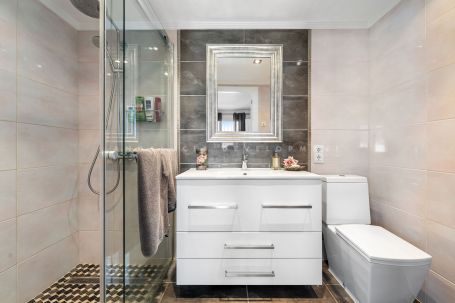We present this special & classic property in the well known development of Los Jarales. Nestled in the heart of Aloha with views towards the Aloha golf course and across the valley. The spacious entrance takes you to the property through the large patio where you can enjoy the morning sun and its a perfect place for the warm summer evenings. The spacious living room has direct access to the west facing terrace with beautiful open views, here there is also the large kitchen and laundry area , the spacious master suite and a guest toilet. On the lower floor you have 2 large ensuite bedrooms. The property comes with a private look up garage which is easy accesable from the house. The property has been well maintained by the current owners and is ready to move into. Please note that the m2 built are bigger than advertised, appr 165m2 A true gem in a popular urbanisation.