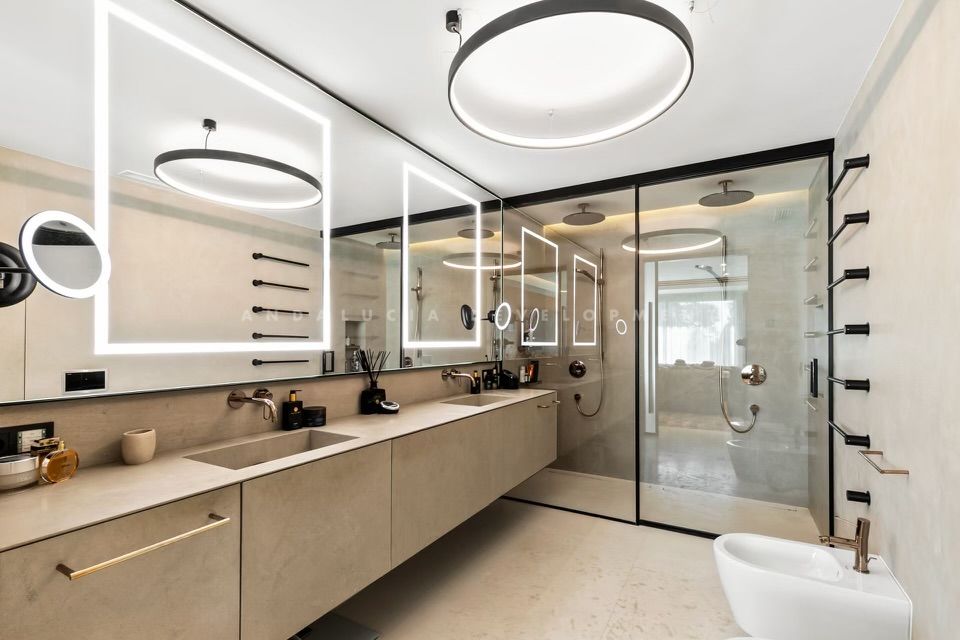 Renovated villa built to the highest standard with no expense spared on materials and equipment. It features 6 very comfortable en-suite bedrooms, including a separate guest house and a guest bedroom located on the top floor, with a separate entrance. There is a garage for two cars and a carport for six cars on a plot of over 2,000 m2. The large, open living and sitting areas include a kitchen outfitted with top-of-the-line Gaggenau appliances and wine fridges. The centrepiece of the kitchen is a long table with seating for ten and a large fireplace. The villa also boasts a children’s playroom, an office, an impressive professional restaurant-style outdoor kitchen, surrounded by cosy chill-out areas next to the heated pool and Jacuzzi, as well as a well-equipped gym. Off the entrance is a built-in security house. In front of the villa, there is a children's playground. The property includes the latest sound systems by Sonos and top security equipment. There is underfloor heating throughout the house, plenty of storage and wardrobes, and the master bedroom features a walk-in closet. All of this is presented in a fantastic Andalusian modern style. This villa is a must-see to be fully appreciated.