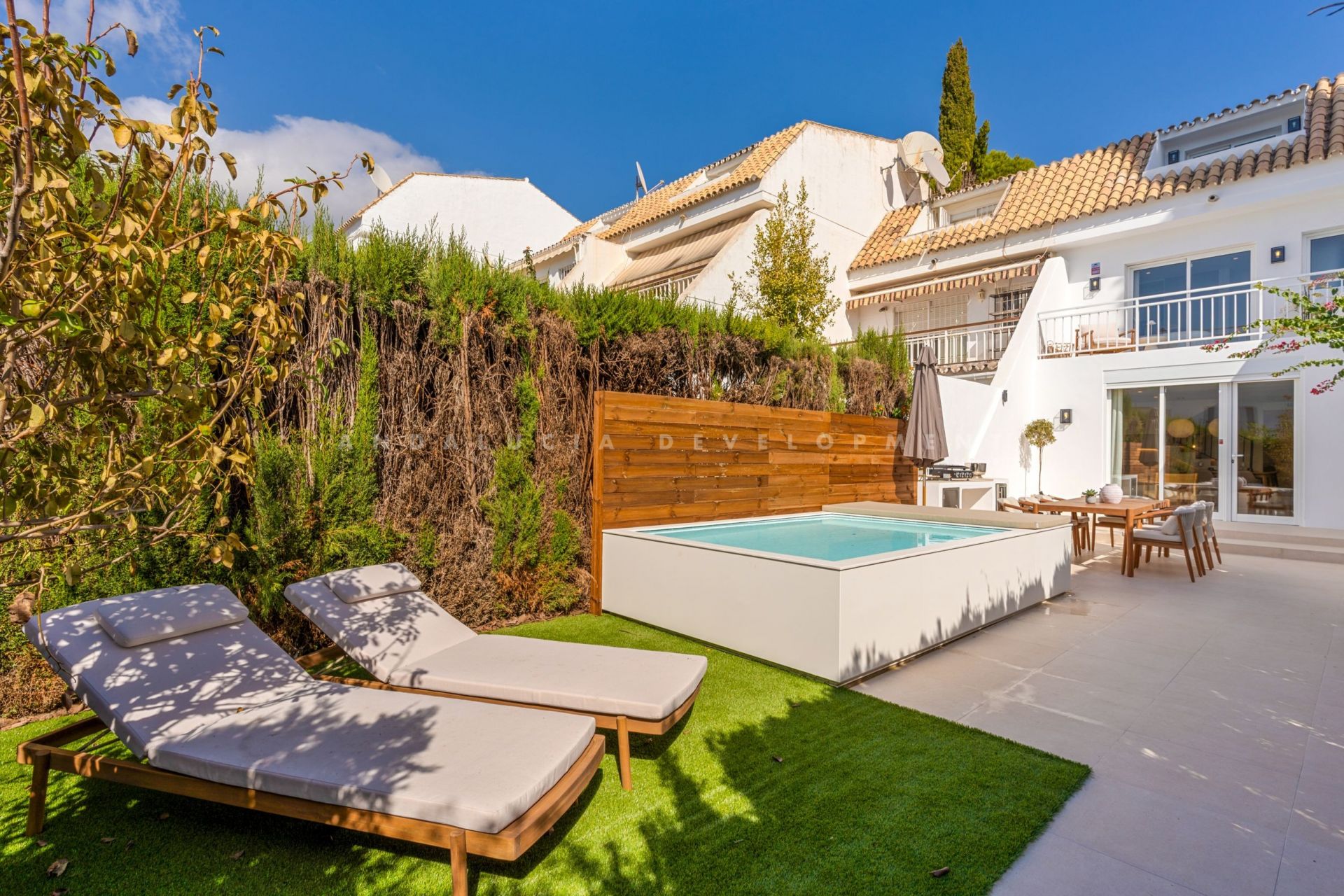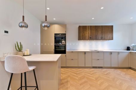 Nestled in the peaceful and prestigious Nagüeles area, right next to the foothills of La Concha and its surrounding national park, you’ll find Casa Montana – a newly built home where no detail has been overlooked. The property features generous parking with a private entrance leading directly into the lush garden. Here, you’re welcomed by a sun-soaked southwest-facing terrace, a private pool, and an outdoor kitchen, ideal for relaxing and entertaining. Inside, the ground floor spans nearly 80 m², comprising a stylish open-plan kitchen, spacious living room, entrance hall, and guest toilet. Scandinavian design principles define the space, with carefully selected, high-quality modern materials. Under the staircase, there’s a custom wine storage area. All rooms are fitted with individually controlled Airzone systems for both heating and cooling, while underfloor heating is installed in all bathrooms. Wet areas are finished with tasteful, full-height tiles in a warm beige tone. On the first floor, you’ll find the master bedroom with an en-suite bathroom and private balcony. A second bedroom also features its own bathroom and balcony, overlooking the courtyard and shared pool area. The top floor boasts sloped ceilings and an additional sea-facing balcony with southwest orientation, offering partial views of the Mediterranean. Currently configured with two additional rooms (ideal as bedrooms or offices), plus a stylish bathroom with walk-in shower. The kitchen is by renowned Scandinavian brand Ballingslöv, fully equipped with modern appliances, including integrated washer and dryer