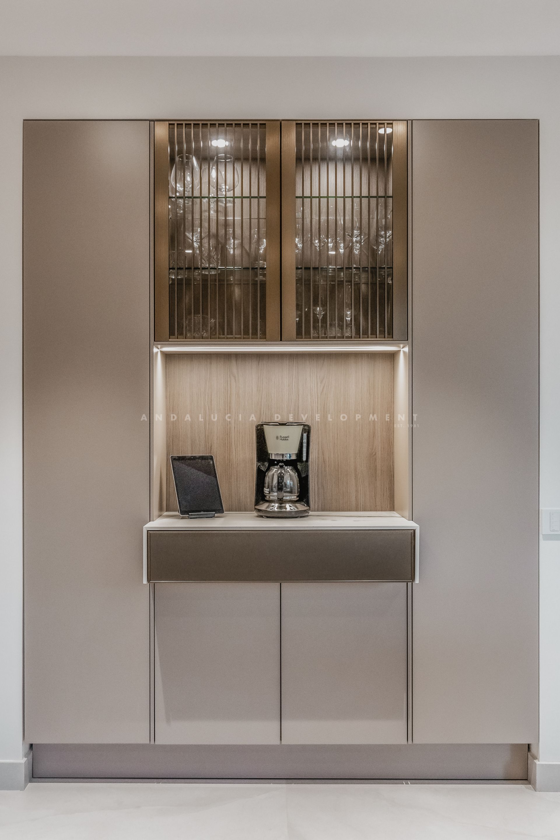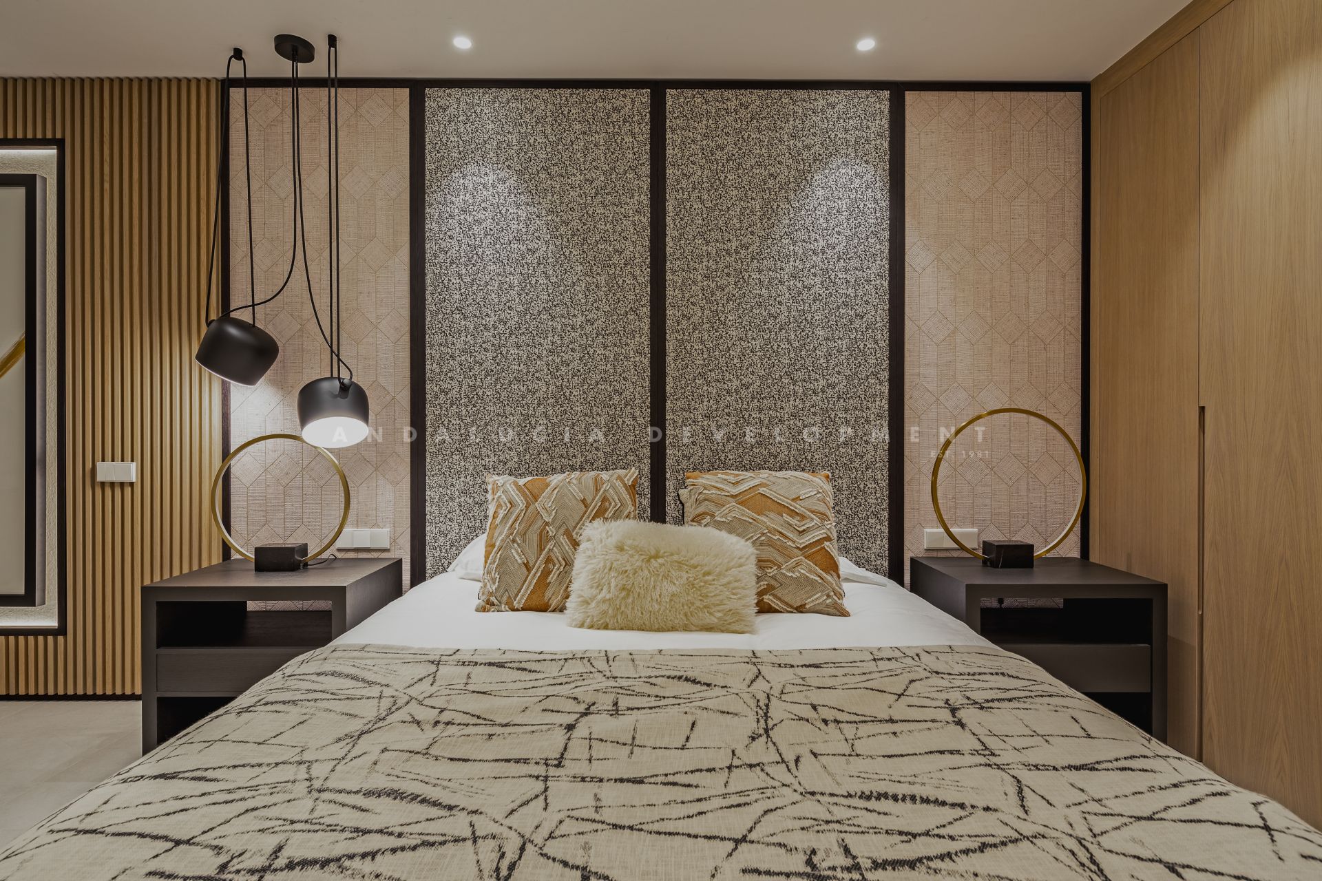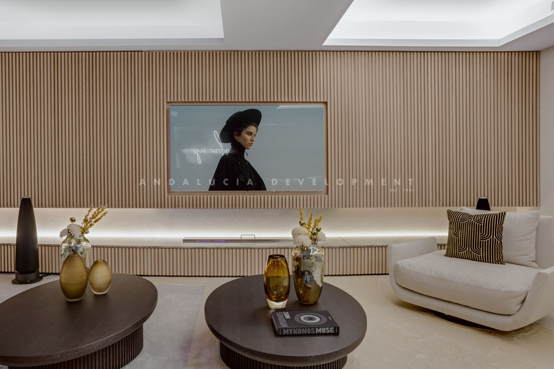 Located in a secure community in Nueva Andalucía, this modern architectural gem shines with its clean lines, captivating geometric exterior, and elegant natural materials in soothing neutral tones. The property invites you to enjoy the outdoors with a covered terrace perfect for dining and relaxing. A custom-designed solarium with a private pool offers breathtaking panoramic views of the valley, La Concha, the Mediterranean Sea, and Gibraltar. Spread over four floors, this exceptional home includes four bedrooms, each with an en-suite bathroom, a high-end kitchen, and underfloor heating for ultimate comfort. A private garage with space for up to three cars ensures unparalleled convenience. The development also features a large, beautifully designed communal swimming pool, offering a serene space to relax and enjoy the Mediterranean climate. This modern home also offers easy access to local amenities and essential services. Furthermore, it is being delivered fully furnished, with an interior design by JA-Flores. We invite you to immerse yourself in the luxury of living in Marbella with this extraordinary property.