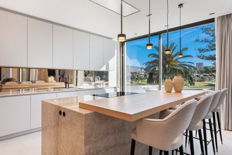 An extraordinary new property that epitomizes luxury living, seamlessly blending contemporary design with the surrounding natural beauty. Designed by a renowned architect and developed by a leading firm known for meticulous craftsmanship, this villa reflects the highest standards in modern residential design. One of the villas most remarkable attributes is its front-line setting on the prestigious Las Brisas Golf Club in Nueva Andalucía—positioned directly in front of hole 12, offering uninterrupted views of the fairway and a serene lake with a fountain. This privileged location is considered one of the finest within the golf valley. The area is celebrated for its tranquillity, lush scenery, and close proximity to Marbella’s most desirable amenities. Residents enjoy a peaceful and established neighbourhood just minutes from Puerto Banús, with its luxury marina, designer boutiques, and world-class dining.