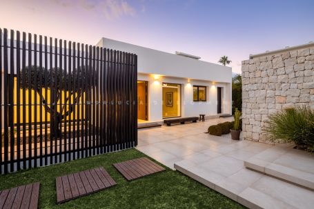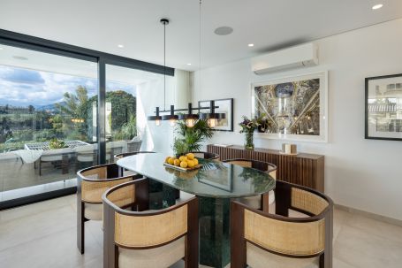 A modern frontline golf villa located in the heart of Nueva Andalucía. This stunning property seamlessly combines contemporary design with luxurious comfort, offering an unparalleled living experience. The villa features expansive terraces, thoughtfully designed for entertaining, and a private outdoor pool that invites relaxation under the Mediterranean sun. With a private driveway adding convenience, this residence is perfectly positioned to enjoy breathtaking golf and mountain views from every angle.
