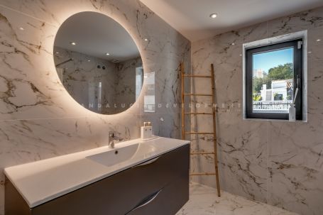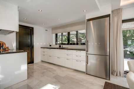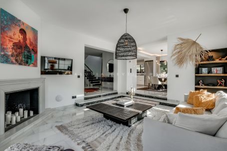 This stunning villa, recently renovated just one year ago, is perfectly located in Nueva Andalucía. Situated close to the beach and within walking distance of all amenities, this property offers an exceptional blend of convenience and luxury. Ground Floor:
