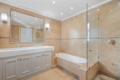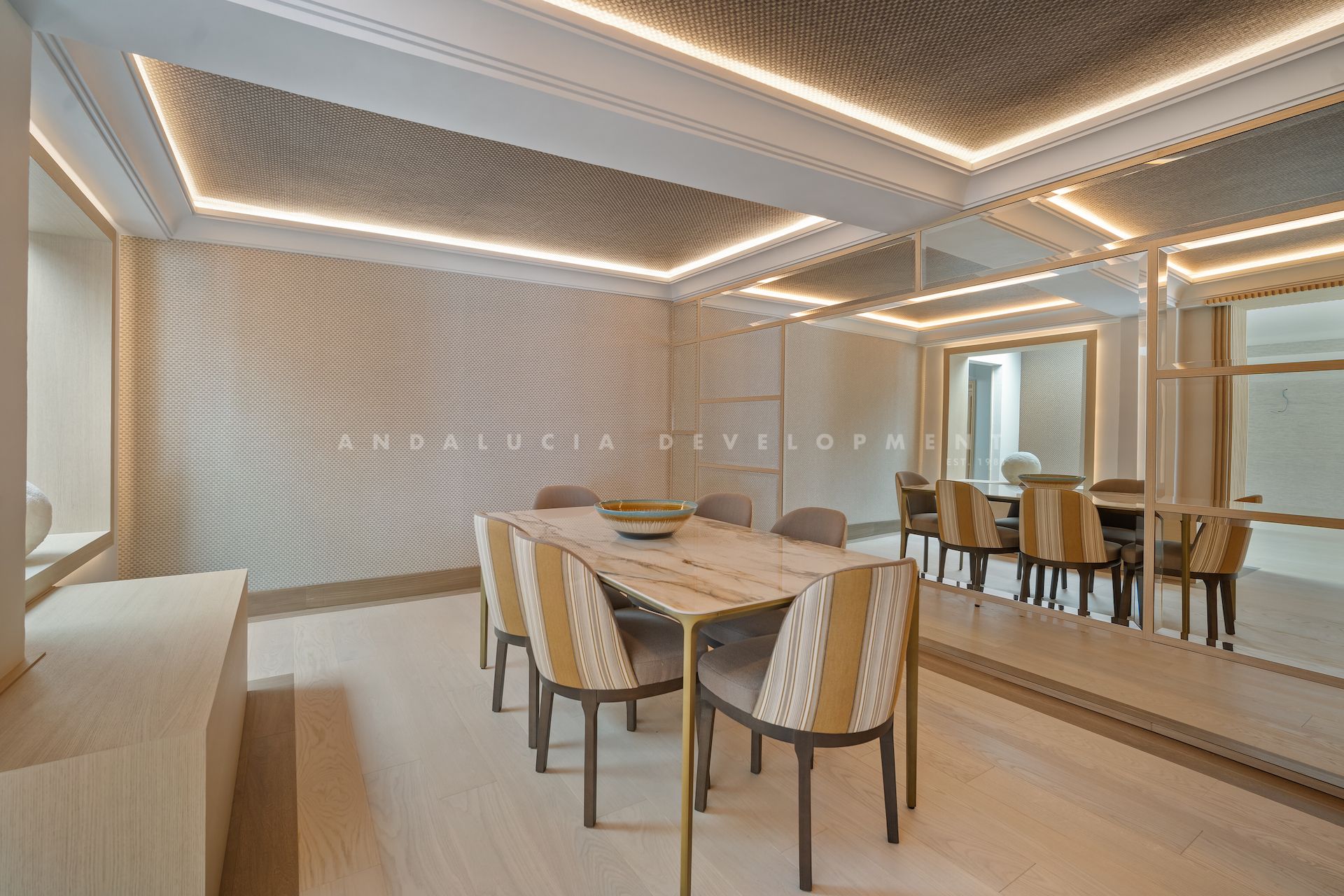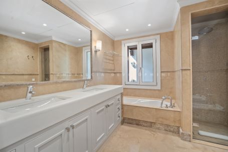 Welcome to an elegant Mediterranean style mansion located in the tranquil area of Paraiso Alto, Benahavis. This grand estate comprises of the main house, recently renovated guest house and staff apartments, making this the ideal property for a large family and even a retreat or boutique hotel. Main House: The main house has three floors and a separate entrance lower level. The entrance hall of the main floor takes you directly to an enormous beautiful living room that is connected all around with an amazing terrace that leads you to the swimming pool. The living room, dining room area and relaxation area with a bar are all in the same open space, the kitchen is separated but also has access to the same terrace that surrounds this part, separate utility room. One bedroom with a private bathroom and dressing room is located at this floor and has an opening to the lovely terrace as well. The top floor of this main house has four bedrooms. Two master bedroom suites with private bathrooms and dressing areas. They all have private terraces from where you can enjoy the lovely garden and views of the mountain and sea. The two additional bedrooms on this floor have terraces and share a bathroom. There is a lower level to the main house that could be utilised as further living accommodation, there is also a staff quarters on this floor with a private entrance and en-suite bathroom.