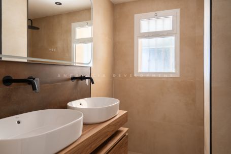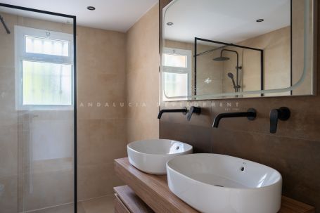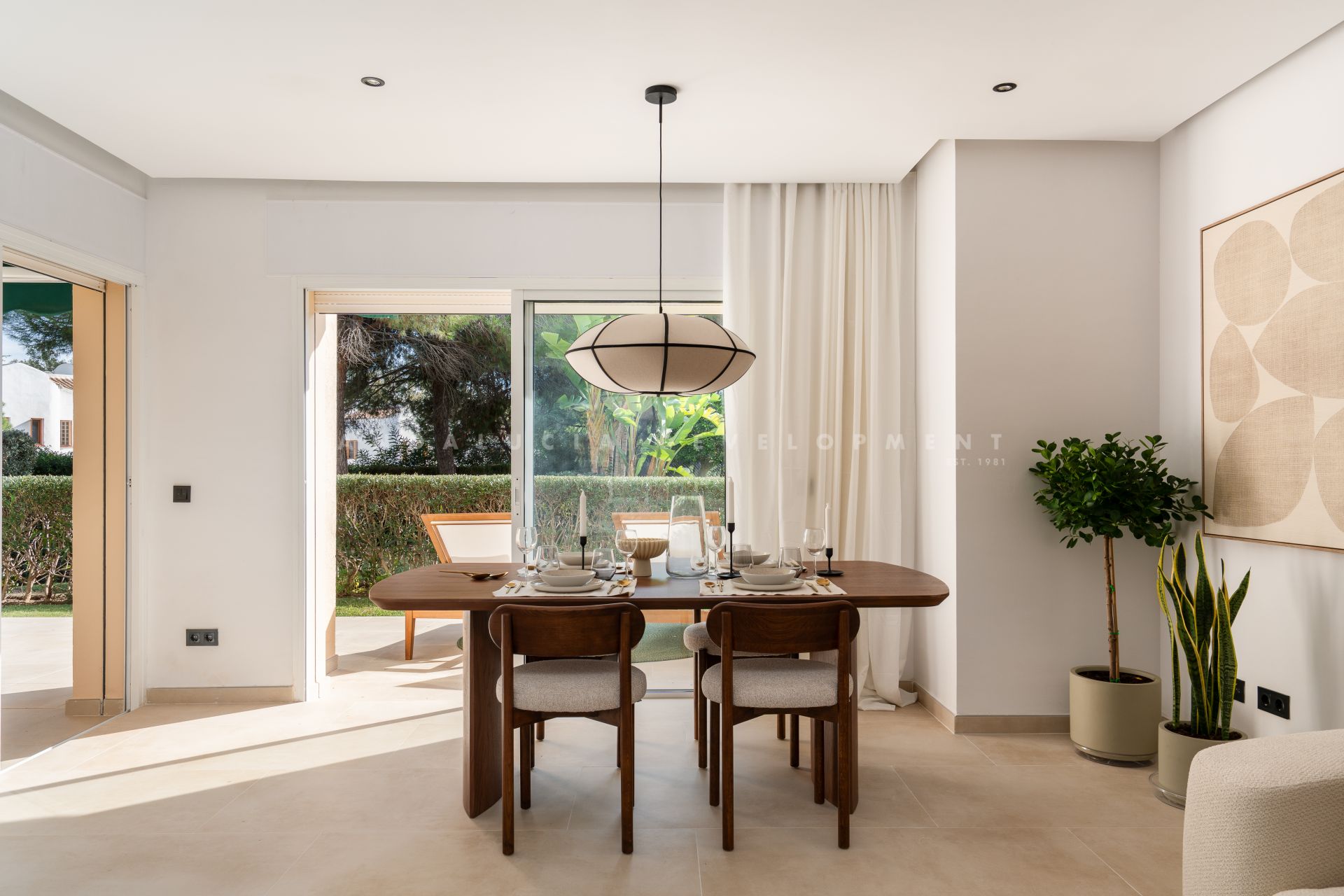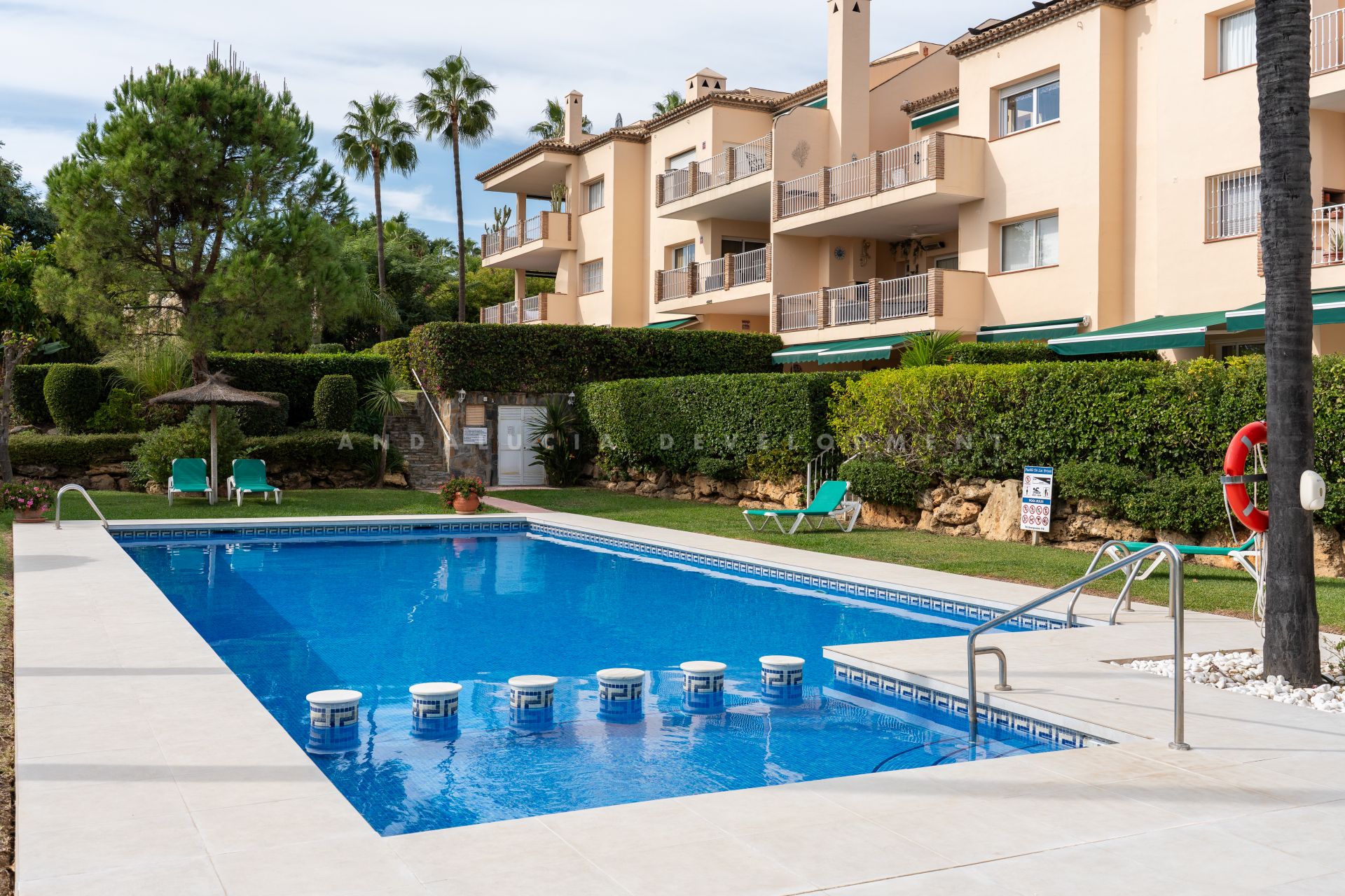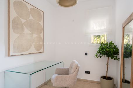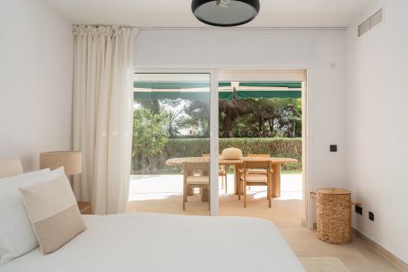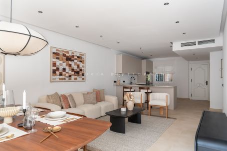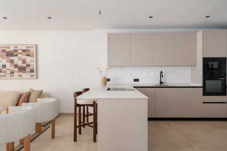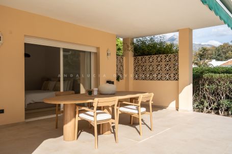 Discover this fully renovated three-bedroom, two-bathroom ground-floor apartment located within the desirable gated community of Pueblo de Las Brisas, in the prime Las Brisas area of Nueva Andalucía. The apartment features a large open-plan layout with a brand-new modern kitchen that connects seamlessly to the bright and spacious living area, creating a contemporary and comfortable environment designed by Elliott James. One of the bedrooms has been thoughtfully converted into a dedicated work-from-home office, adding flexibility for modern living. Natural light fills the interiors throughout the day, and the generous covered terrace provides the ideal space for outdoor dining and relaxing in privacy. Residents enjoy access to beautifully maintained communal gardens, a tennis court, and a swimming pool, all within this charming Andalusian-style development. Perfectly positioned close to several prestigious golf courses and just a short drive from Puerto Banús, Marbella, and San Pedro, this property is an excellent choice for year-round living or as a modern holiday home on the Costa del Sol.