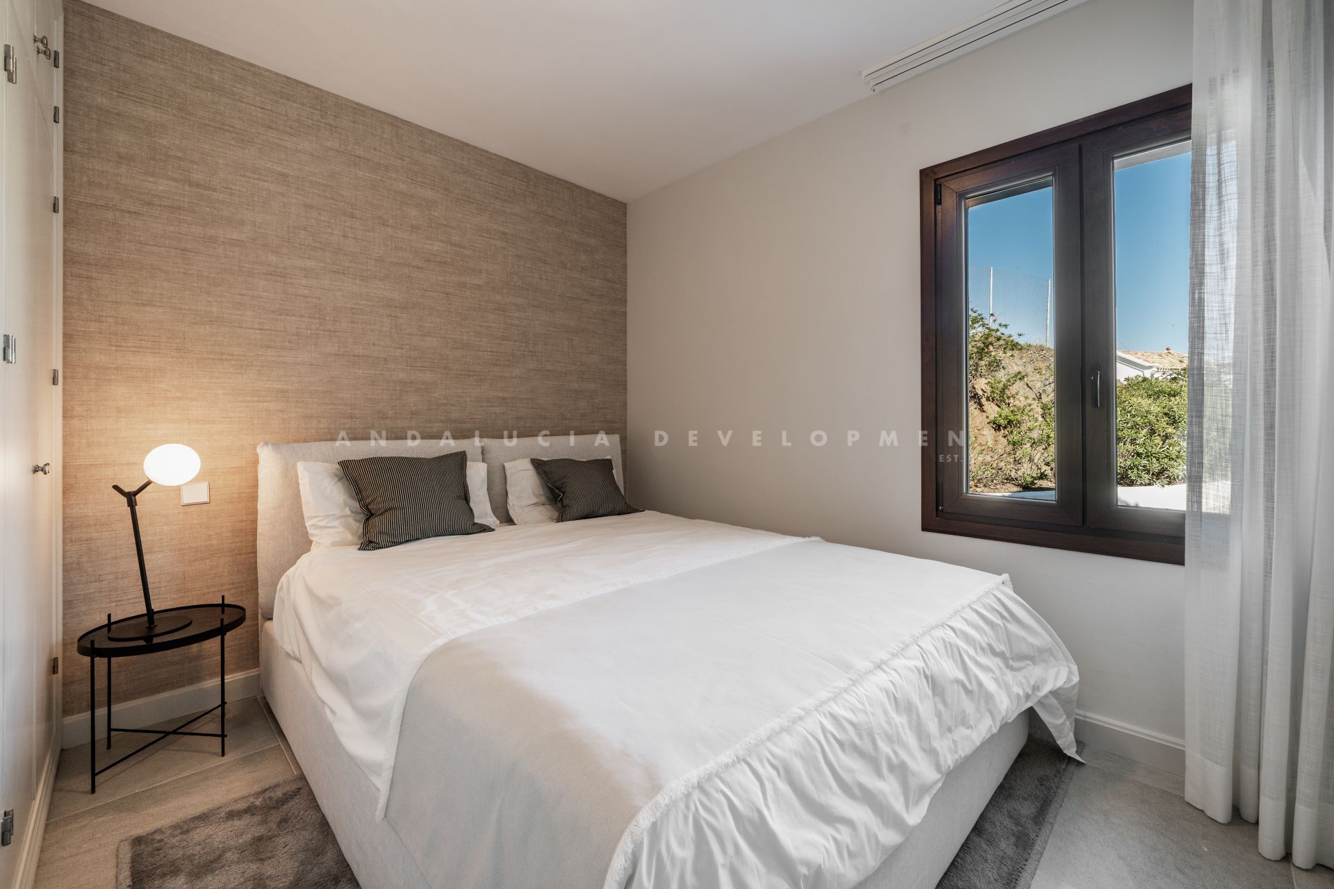 The setting offers privacy and tranquillity while remaining close to everyday amenities and coastal life. Inside, warm and welcoming interiors flow effortlessly through generous living and dining spaces, all designed to make the most of the natural light and views. A spacious open kitchen with a central island forms the heart of the home, ideal for everyday living and entertaining alike. The home offers comfortable and well-proportioned bedrooms, including a generous main suite with a walk-in wardrobe, a large bathroom, and private outdoor spaces to enjoy the surroundings. Additional guest accommodation and flexible living areas provide space for visitors, work, or leisure. Outdoor living is a key feature, with expansive terraces, an outdoor kitchen and bar, landscaped gardens, and a private swimming pool, all set against a beautiful natural backdrop and stunning sea views. A private garage and separate access complete the property. Well located near international schools, golf courses, beaches, and nearby towns, this property offers a calm, well-balanced lifestyle connected to nature and open space.