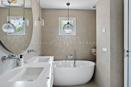 Una casa adosada bellamente renovada en la exclusiva comunidad de Alcores del Golf, con doble acceso, a pocos pasos del Club de Golf Los Naranjos. Combinando un diseño moderno con un cálido toque escandinavo, esta casa ofrece un luminoso espacio de estar diáfano y una fluida integración entre el interior y el exterior. La planta principal cuenta con una cocina a medida, una amplia sala de estar y acceso directo a un jardín privado con zona de barbacoa y una relajante sauna, ideal para disfrutar del estilo de vida marbellí durante todo el año. En la planta superior, la casa ofrece tres dormitorios con baño en suite, incluyendo una elegante suite principal con vestidor, terraza orientada al suroeste y jacuzzi privado. Para quienes buscan más espacio, también existe la posibilidad de crear un cuarto dormitorio. Ubicada en una de las zonas residenciales más codiciadas de Nueva Andalucía, la propiedad ofrece privacidad, comodidad y conveniencia, a solo minutos de los mejores campos de golf, servicios básicos y a un corto trayecto en coche de la playa.