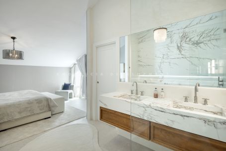 Ubicado en la cotizada zona de Nagüeles, este impresionante ático dúplex excepcional ofrece vistas panorámicas al mar y a la montaña. Diseñado con un diseño moderno de planta abierta, las áreas de estar, comedor y cocina están perfectamente conectadas, creando un ambiente luminoso y espacioso. La cocina de última generación cuenta con una llamativa isla de mármol, elegantes gabinetes de madera y electrodomésticos integrados de alta gama, con un elegante botellero que se suma a la estética. Las terrazas maximizan la vida al aire libre, con una cocina pequeña con barbacoa y un jacuzzi privado para refrescarse mientras disfruta de las vistas. La terraza del nivel superior ofrece una sala de estar íntima, ideal para entretenerse o relajarse. En el interior, los dormitorios están diseñados para la comodidad y el estilo, y la suite principal ofrece un vestidor y un lujoso baño en suite.